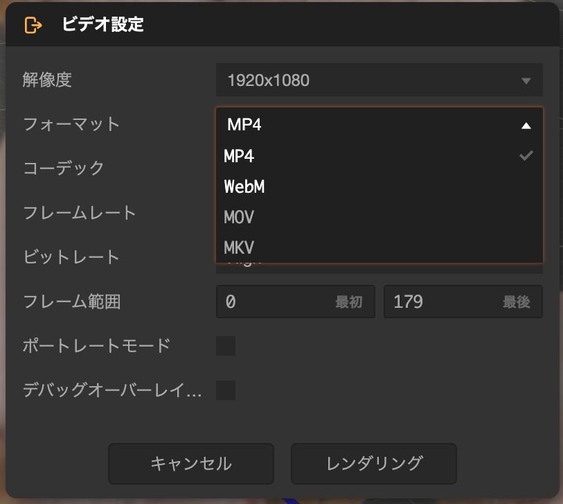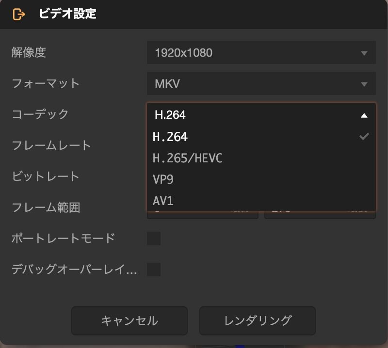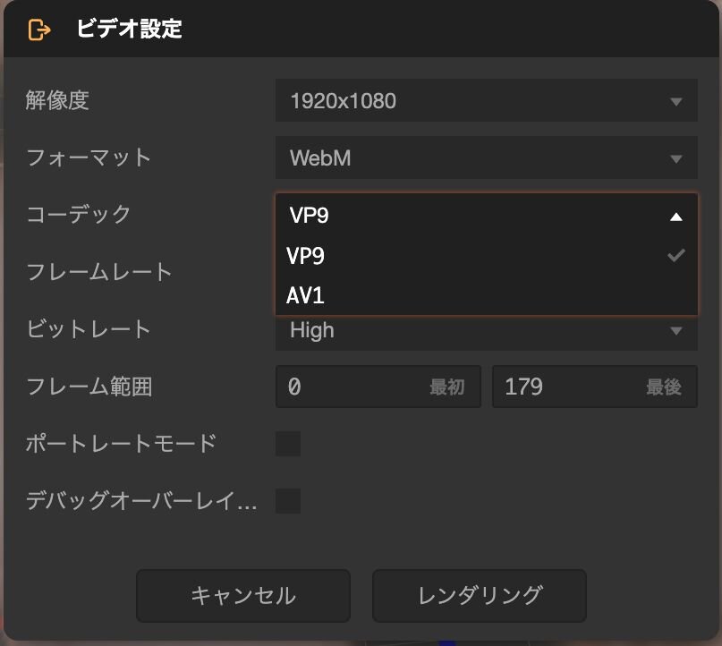 バージョン2.14.0では、高度な動画レンダリングがサポートされ、MP4・MOV・MKV・WebM形式によるレンダリングが可能となった。各フォーマットがサポートするコーデックも選択でき、フレームレートとビットレートの指定も行える。また、タイムライン上のフレーム範囲を指定してレンダリングする機能も追加されている。アスペクト比はランドスケープ(横長)とポートレート(縦長)の両方に対応。