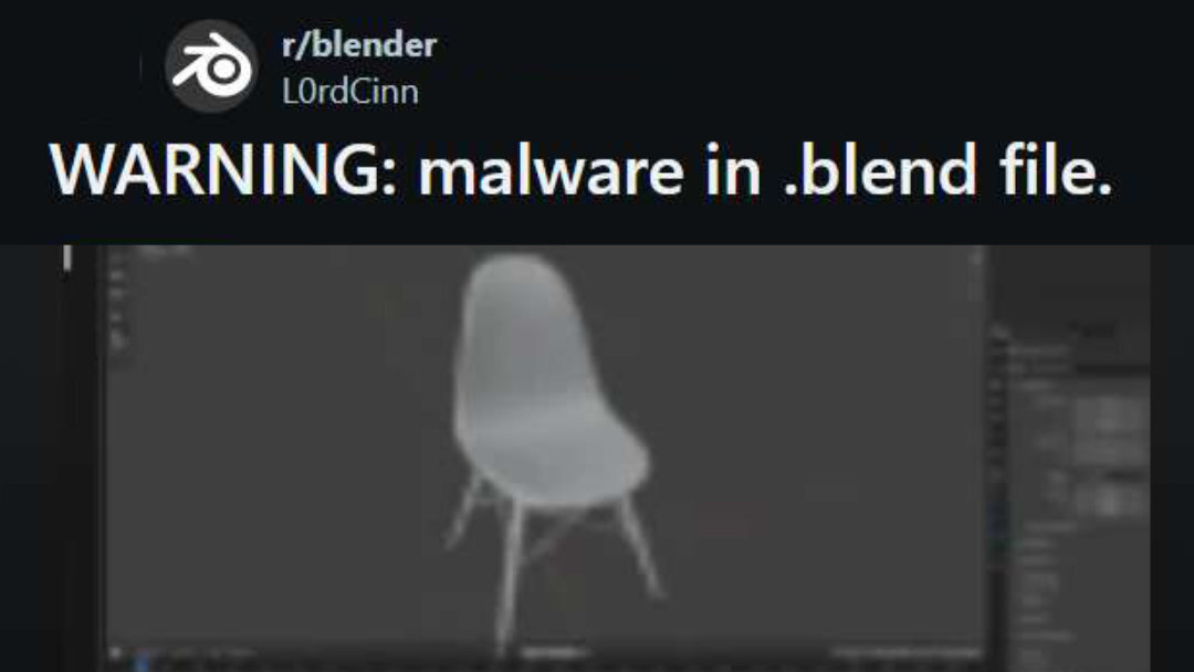 ●マルウェアに感染したBlenderファイルに注意! 椅子のモデルファイルにPythonスクリプトが埋め込まれ、設定次第で自動実行される危険性あり(2025年6月)