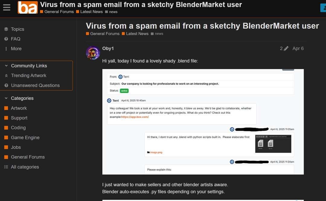 https://blenderartists.org/t/virus-from-a-spam-email-from-a-sketchy-blendermarket-user/1587591