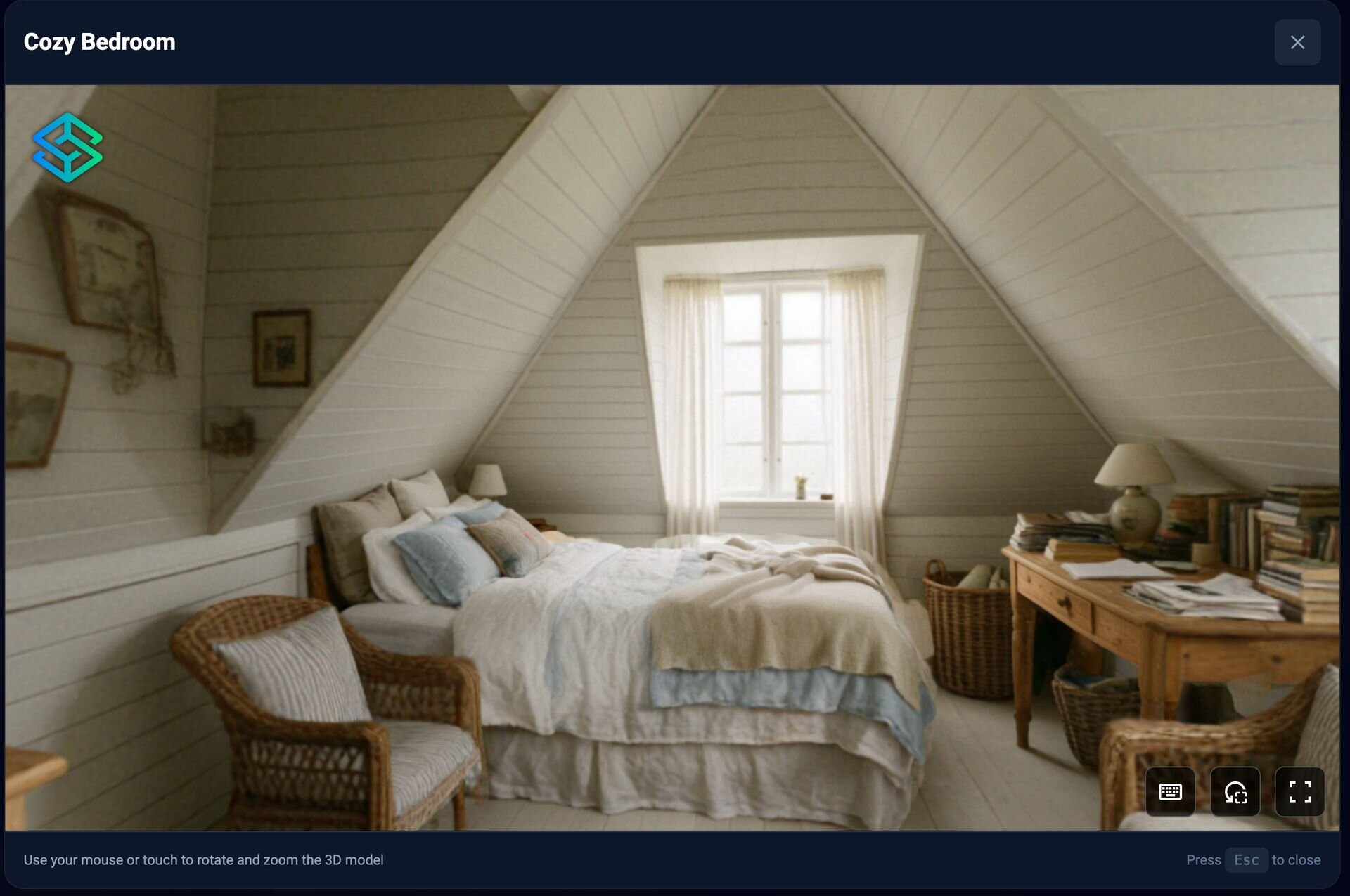Once generated, the world is interactive in real time. You control the camera, explore from any angle, and render instantly — even on low-end hardware, directly in the browser. High-quality 3D world exploration is no longer gated by expensive equipment.