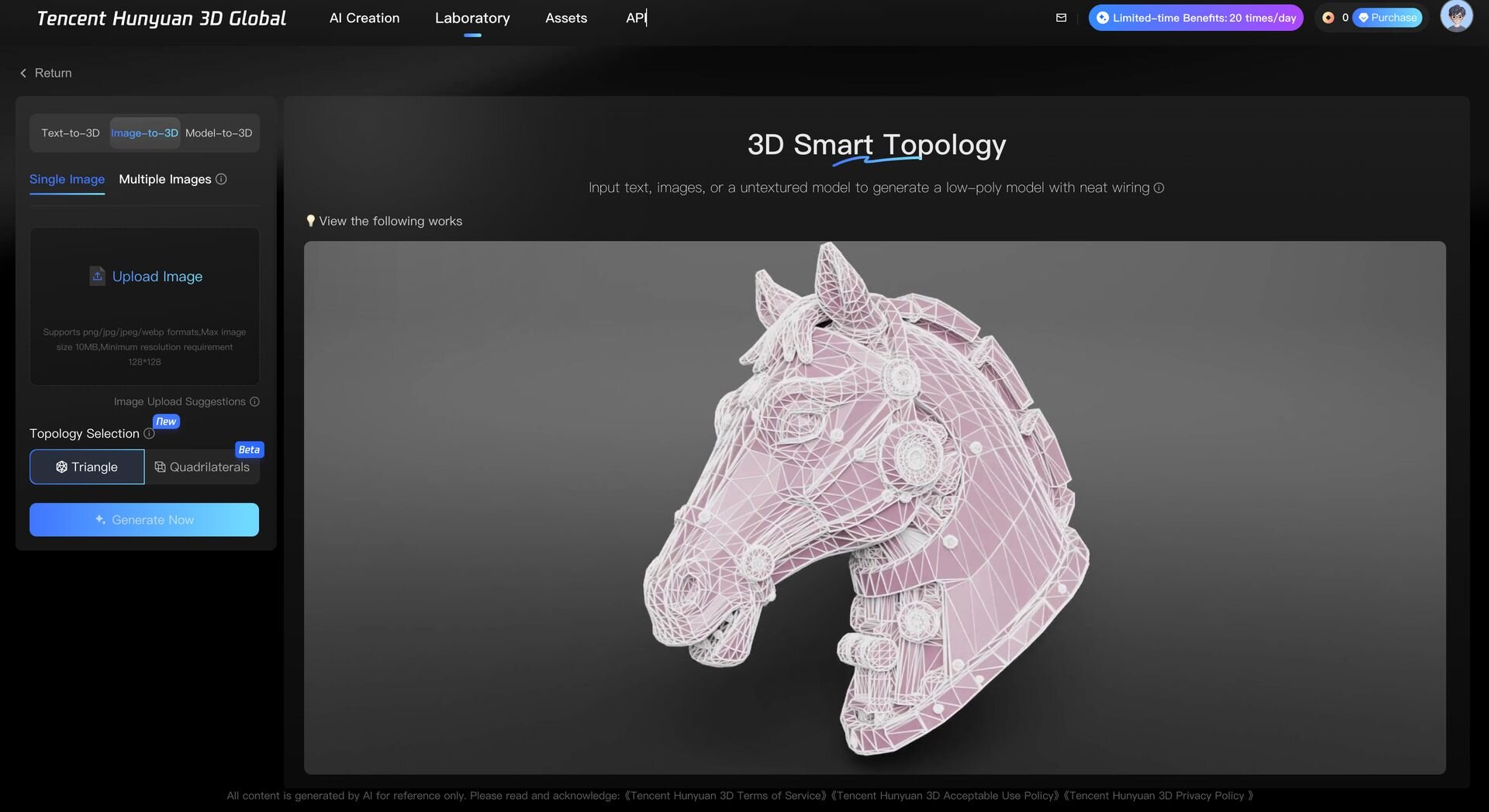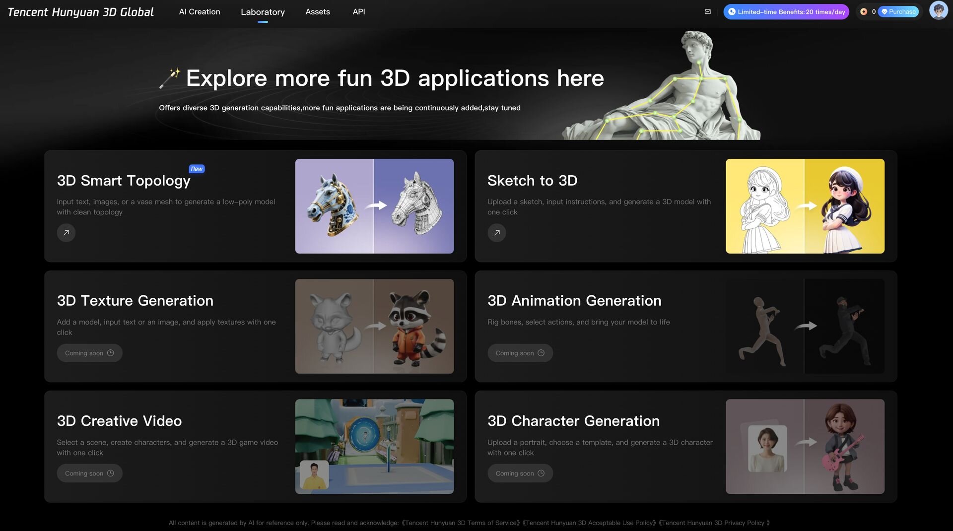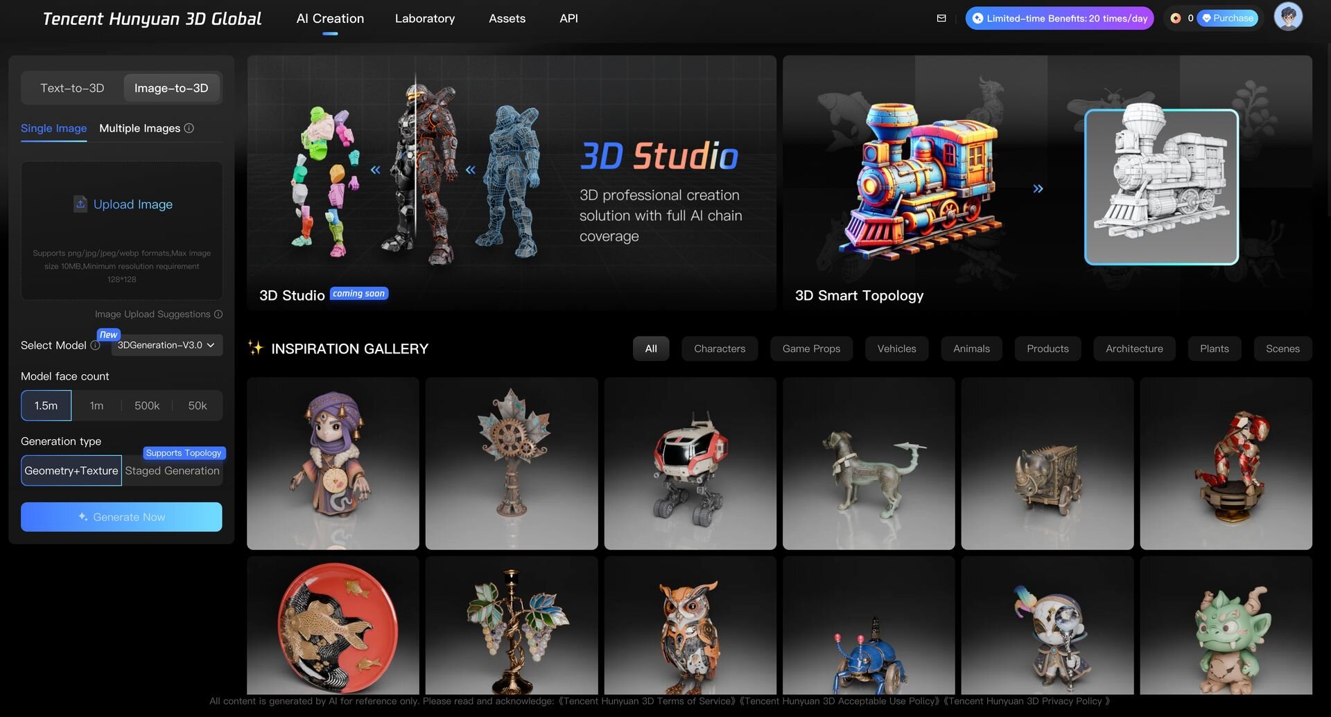 New creators get 20 free generations daily on the platform. Enterprise API users receive 200 free credits upon registration. Start building now!Hunyuan 3D Engineを正式にグローバル展開します!