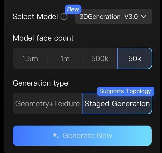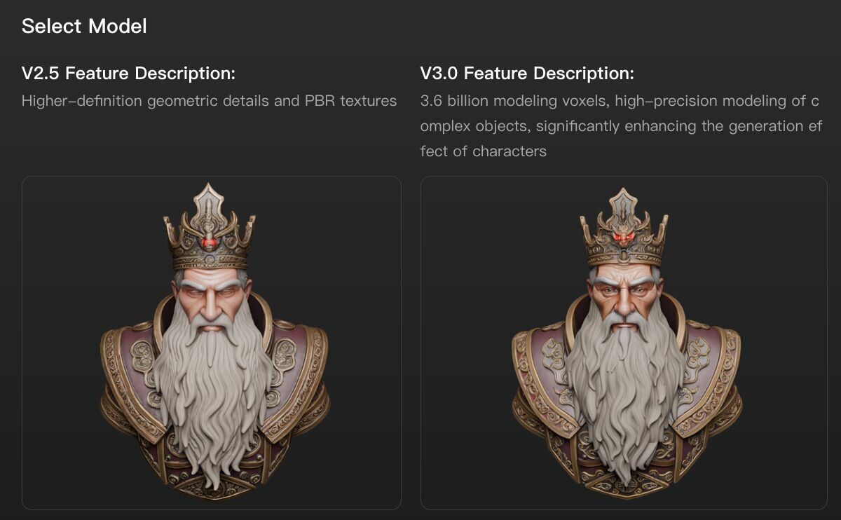 ▲利用可能なモデルはV2.5とV3.0、ポリゴン数は5万・50万・100万・150万の4段階から選択可能