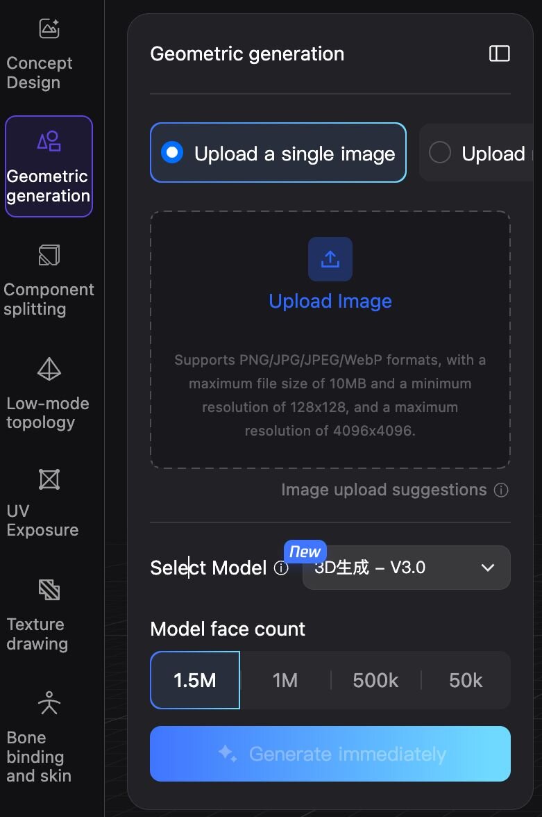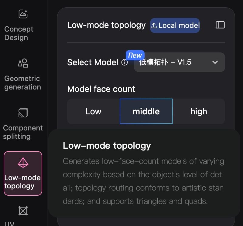 ・Flexible Output: PolyGen 1.5 supports both Quad and Triangular Topology, ensuring viability for both soft-surface and hard-surface models in professional pipelines.