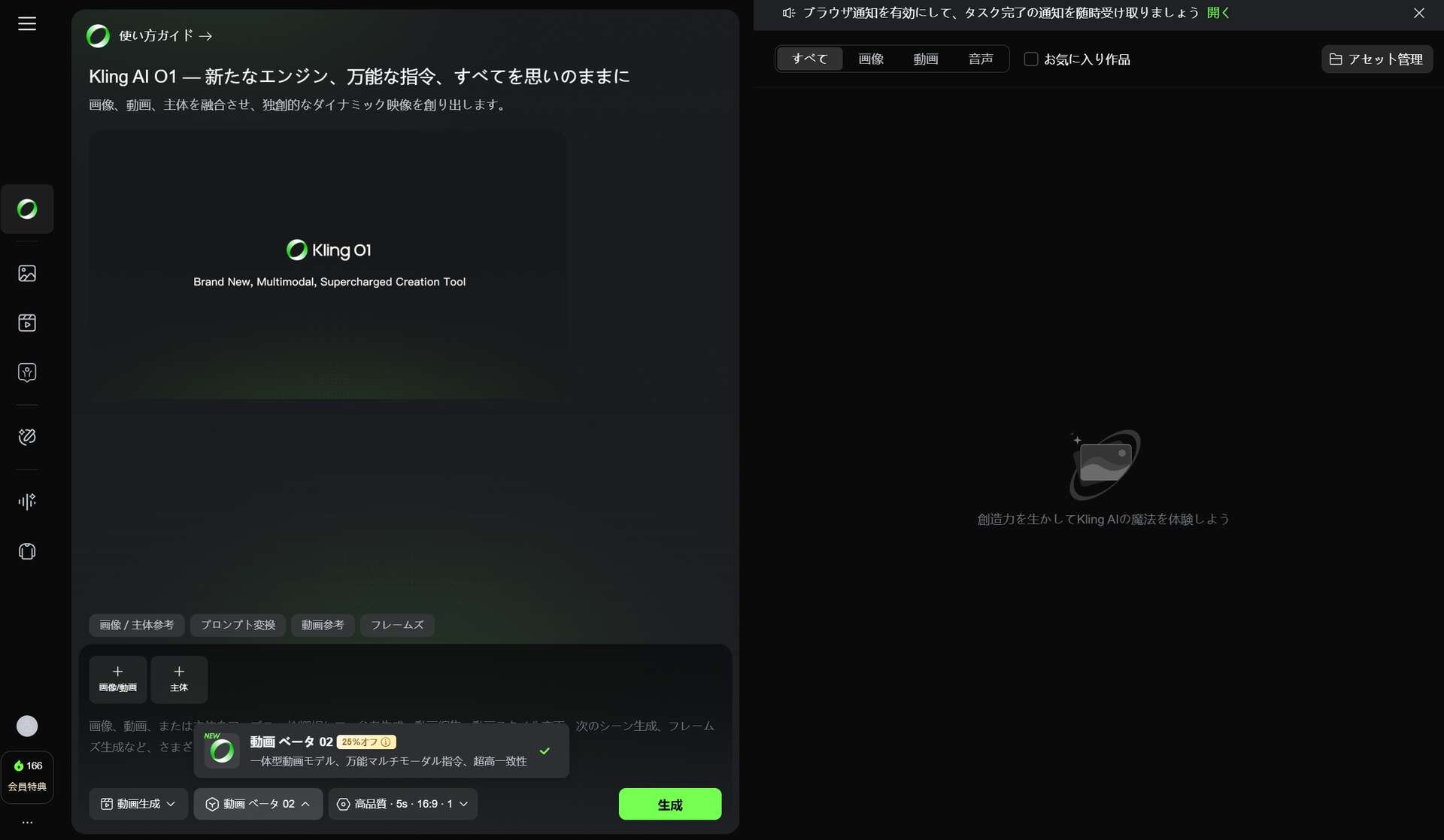 ■Kling O1(公式Webアプリ、ワークスペース内)