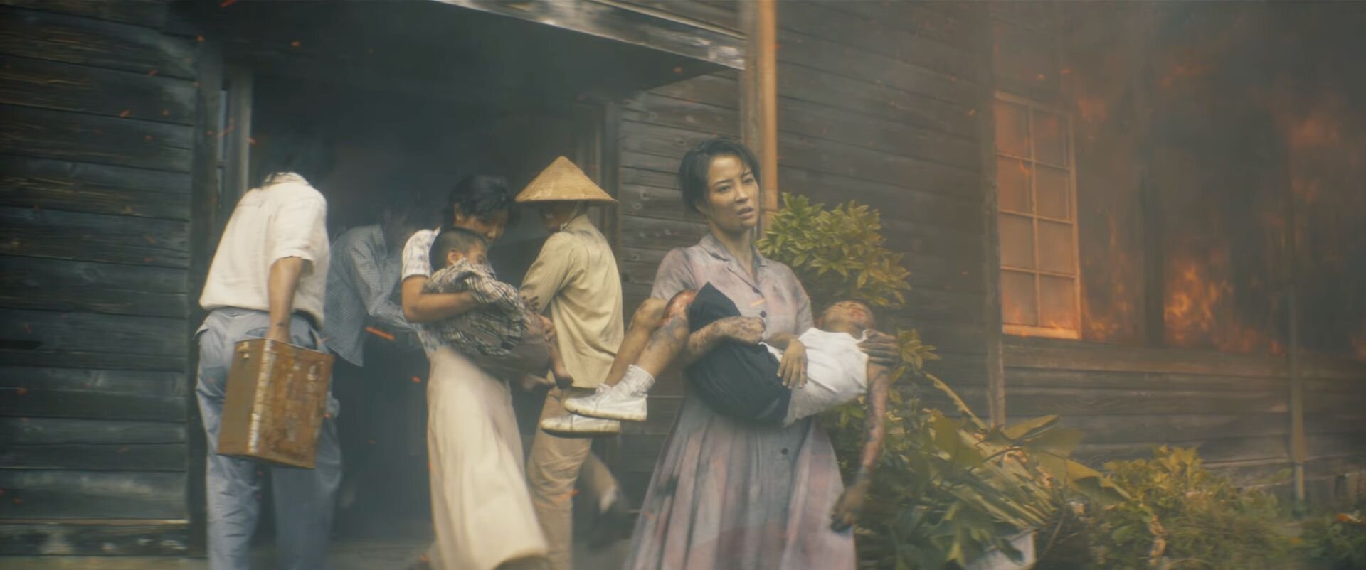 緊張感の高い火災からの避難のシーンもVFXによりリアルに演出している。