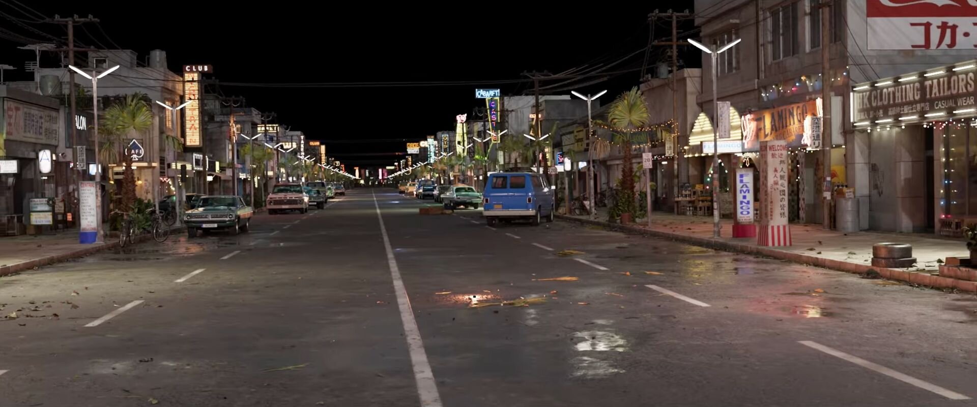 実写では再現困難な、当時の沖縄の町並みや独特の空気をVFX技術を用いて構築している。