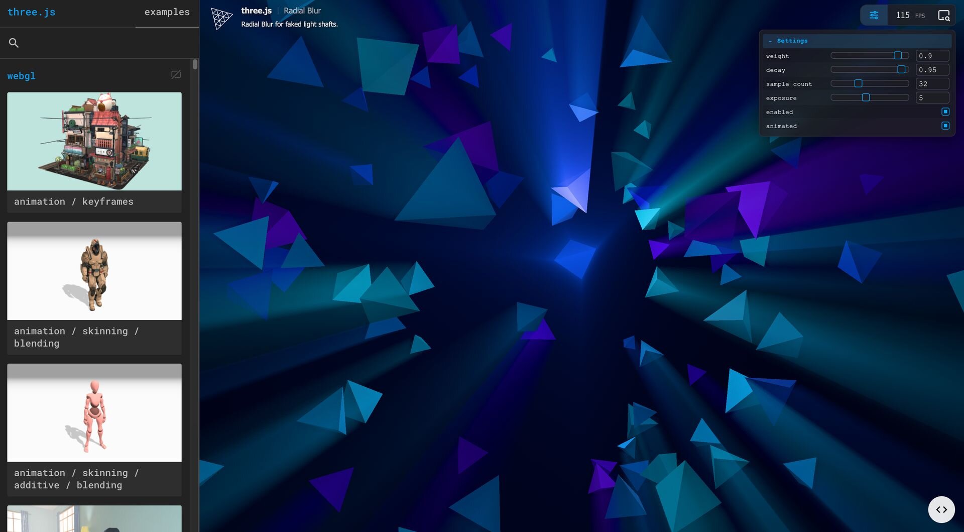 https://threejs.org/examples/#webgpu_postprocessing_radial_blur
