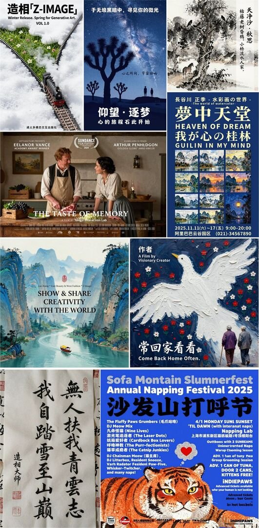 Excellent Bilingual Text Rendering: Z-Image-Turbo can accurately render Chinese and English text while preserving facial realism and overall aesthetic composition, with results comparable to top-tier closed-source models. In poster design, it demonstrates strong compositional skills and a good sense of typography. It can render high-quality text even in challenging scenarios with small font sizes, delivering designs that are both textually precise and visually compelling.