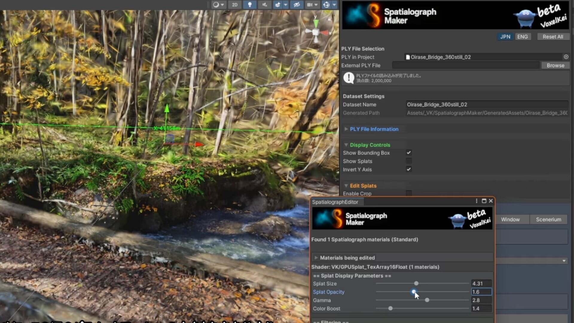 ●VoxelKei氏、無料の3DGS編集用Unityエディタ拡張「Spatialograph Maker」ベータ版をBOOTHで公開! 小規模・大規模・ボクセル化の3種モードを搭載