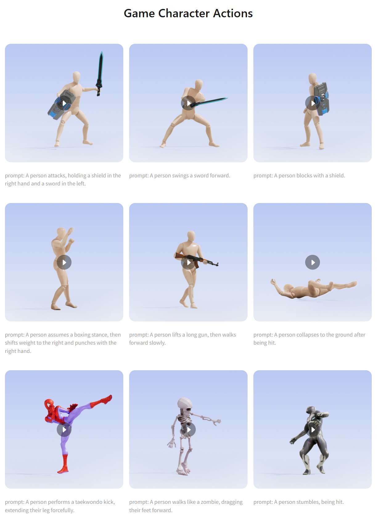 制限事項として、現時点では生成対象が人型キャラクター(Humanoid)に限定され、動物や非人型クリーチャーの生成には対応していない。また、複雑な感情表現や服装などの視覚的属性、カメラアングル、複数人の相互作用などはサポート外となっている。