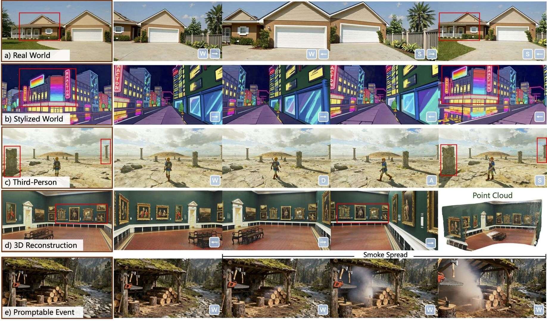 技術面では、独自の「再構成コンテキストメモリ(Reconstituted Context Memory)」メカニズムにより、長時間にわたる生成においても空間の歪みや破綻を防ぐジオメトリ的整合性(Geometric Consistency)を確保。
