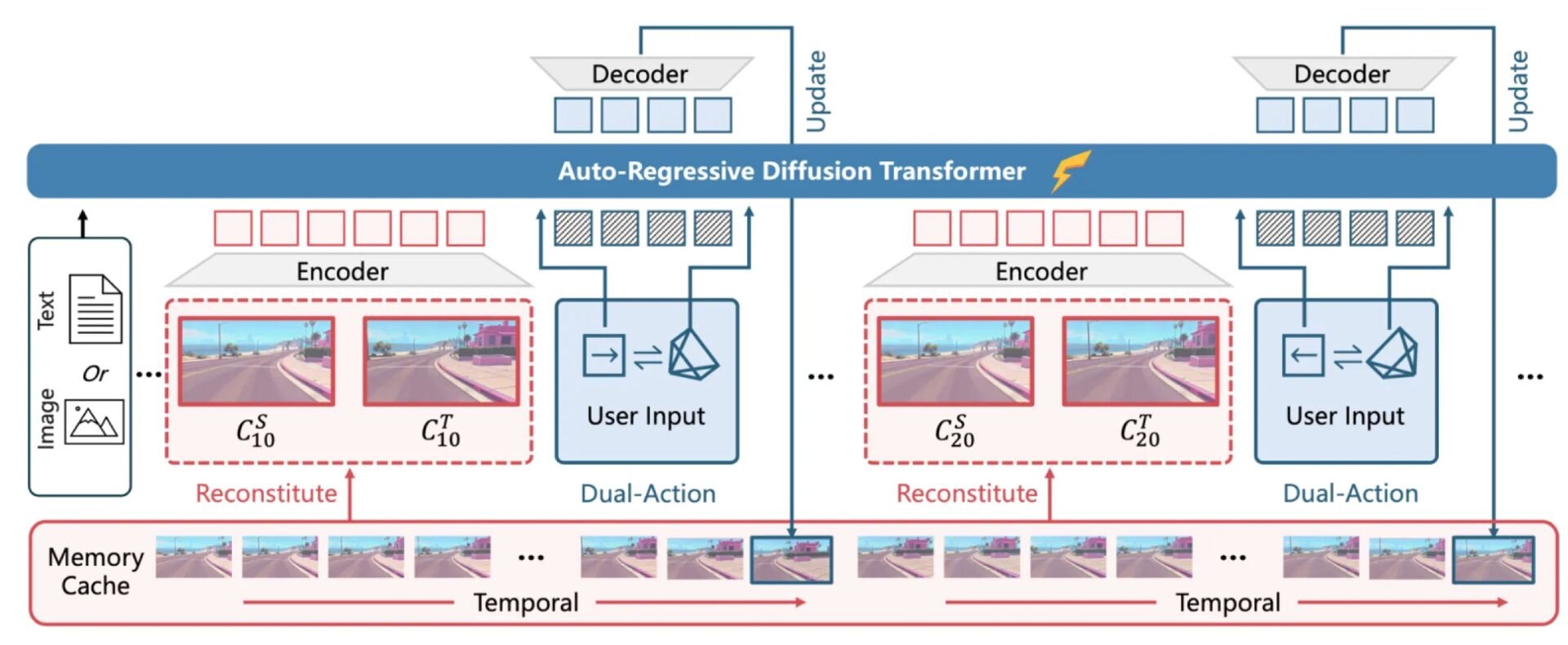 「HY World 1.5(WorldPlay)」は、テキストや画像の入力から、ユーザーが自由に探索・対話可能な3D世界を生成できる技術。従来技術では生成速度とメモリ効率がトレードオフの関係にあり、長時間の生成において整合性を保つことが困難だったが、HY World 1.5はストリーミング動画拡散モデル(Streaming Video Diffusion Model)として開発され、こうした課題を克服している。