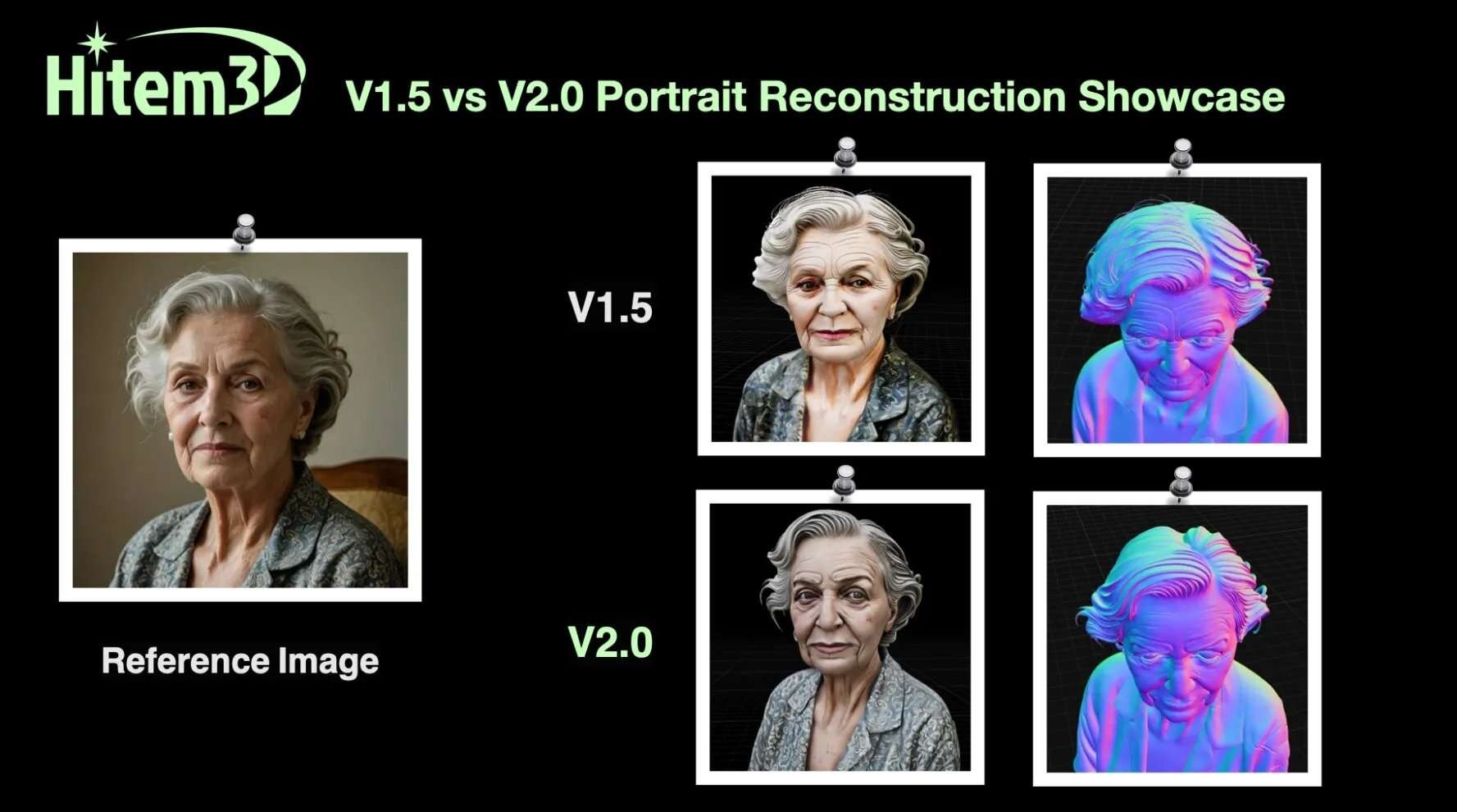 また、人物キャラクターの再構成能力が向上し、頭蓋骨や顔の比率を構造レベルで推論することで、目鼻立ちの位置や形状をより写実的にモデル化できるという。髪の毛の表現においても、毛根から生えているような自然な毛束感やながれを再現できるとのことだ。