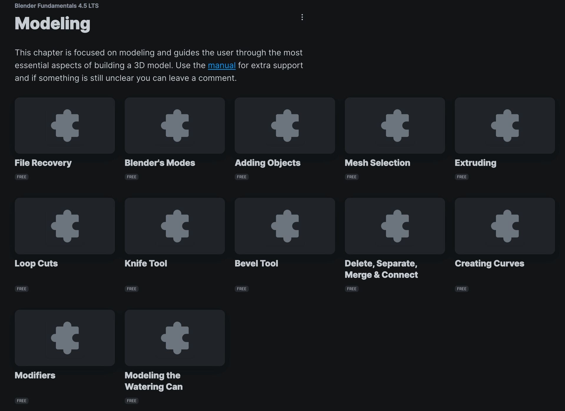一例として、「Modeling」セクションには全12のレッスンが含まれている。