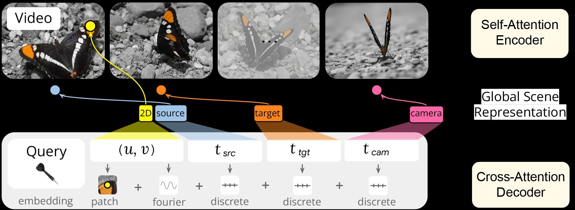 解析精度と柔軟性の両立にあたってD4RTでは、独自のクエリ(質問)メカニズムを導入。エンコーダが動画から生成した「潜在的なシーン表現(Latent scene representation)」に対し、デコーダが「特定の画素が、任意の時間に3D空間のどの座標に存在するか」という具体的なクエリを投げかける。