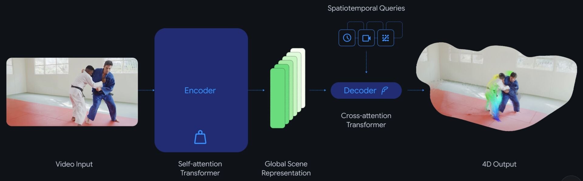 「D4RT」は、トランスフォーマーをベースとした統一的なエンコーダ・デコーダ・アーキテクチャを採用したAIモデル。