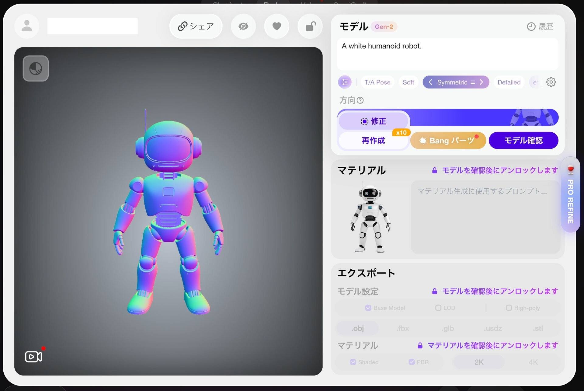 ▲「A white humanoid robot.」というテキストプロンプトから画像生成を行い、3Dモデル生成を行ったところ -