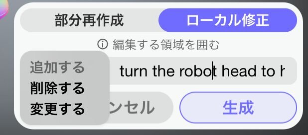 2)ローカル編集(ベータ):プロンプトを入力するだけで、モデルの特定の部分をピンポイントで修正