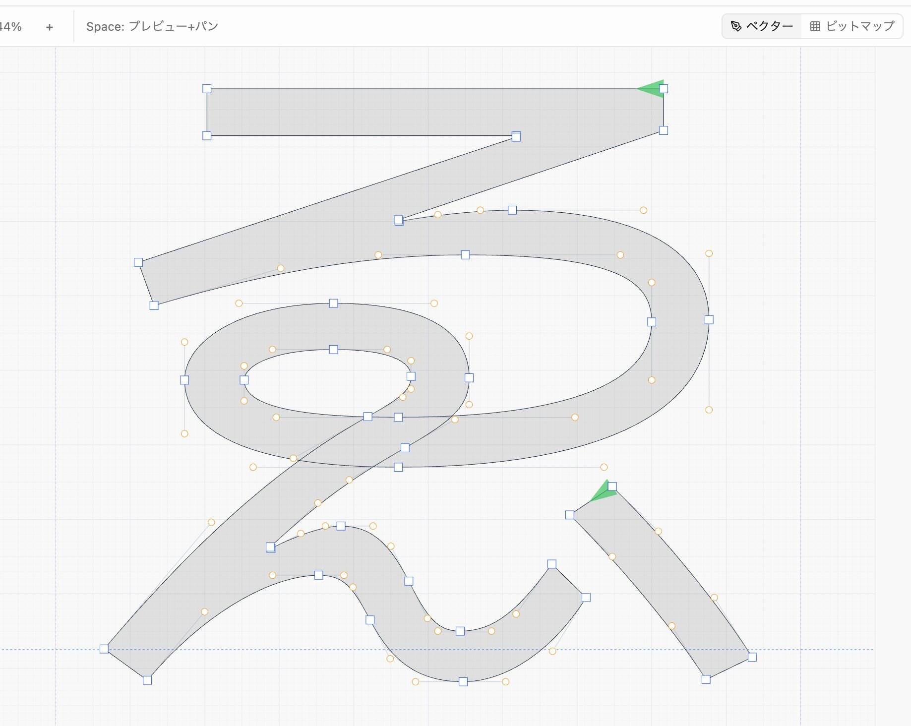 「モジサク」は、Webブラウザだけで本格的なフォント制作を可能にするツール。ベクター編集とビットマップ編集モードの2種を搭載する。ベクター編集では、ペンツールや矩形・楕円ツールを用いたパスとアンカーポイント操作により、精密な形状描画が行える。一般的なドローソフトに近い操作性を備え、ショートカットキーやアンドゥ・リドゥ機能も搭載。