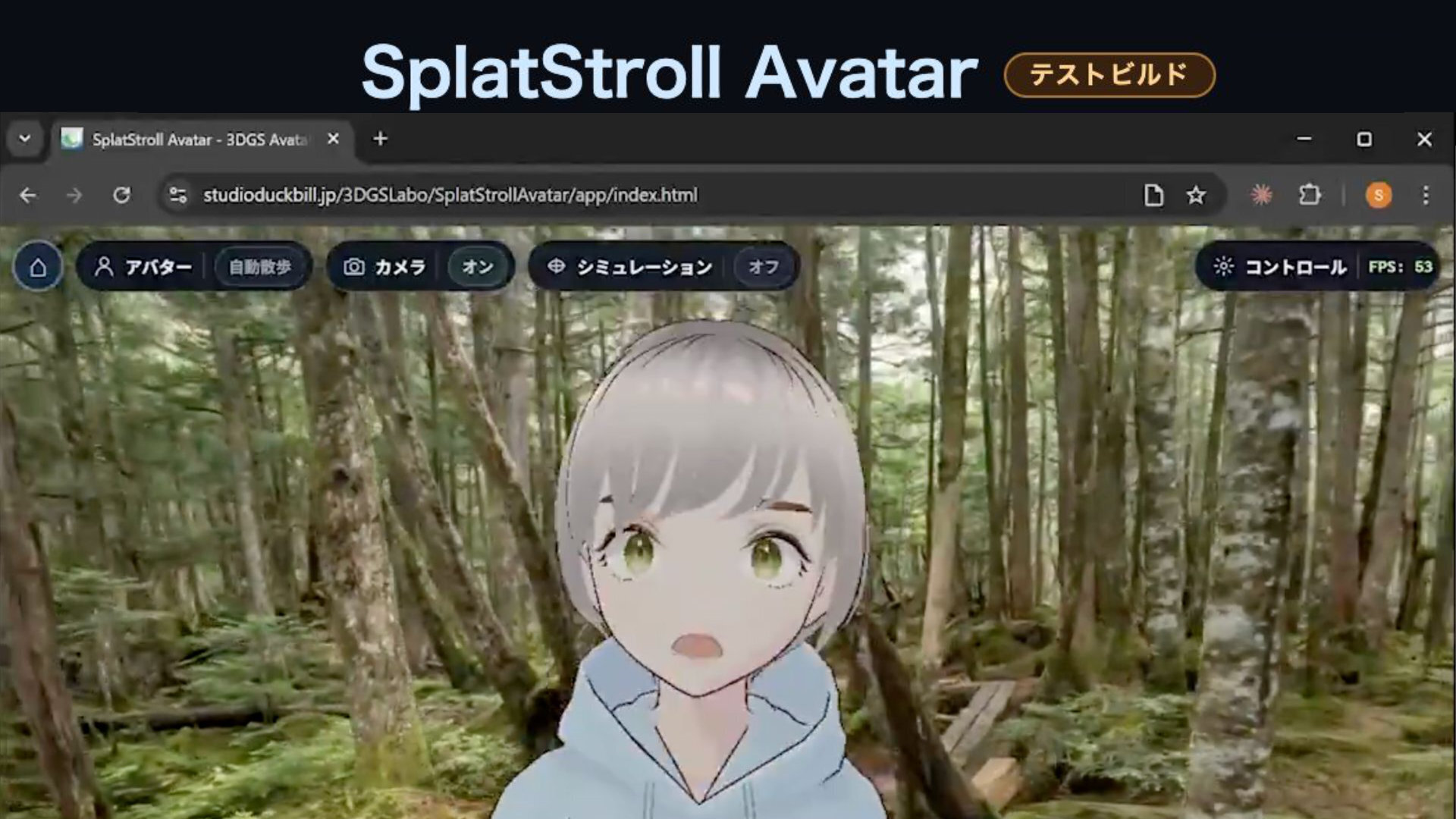 ●スタジオダックビル、Webブラウザだけで3DGSから仮想空間をつくるアプリ「SplatStroll Avatar」テスト版を公開! 3DGS描画にThree.jsとSpark 2.0使用