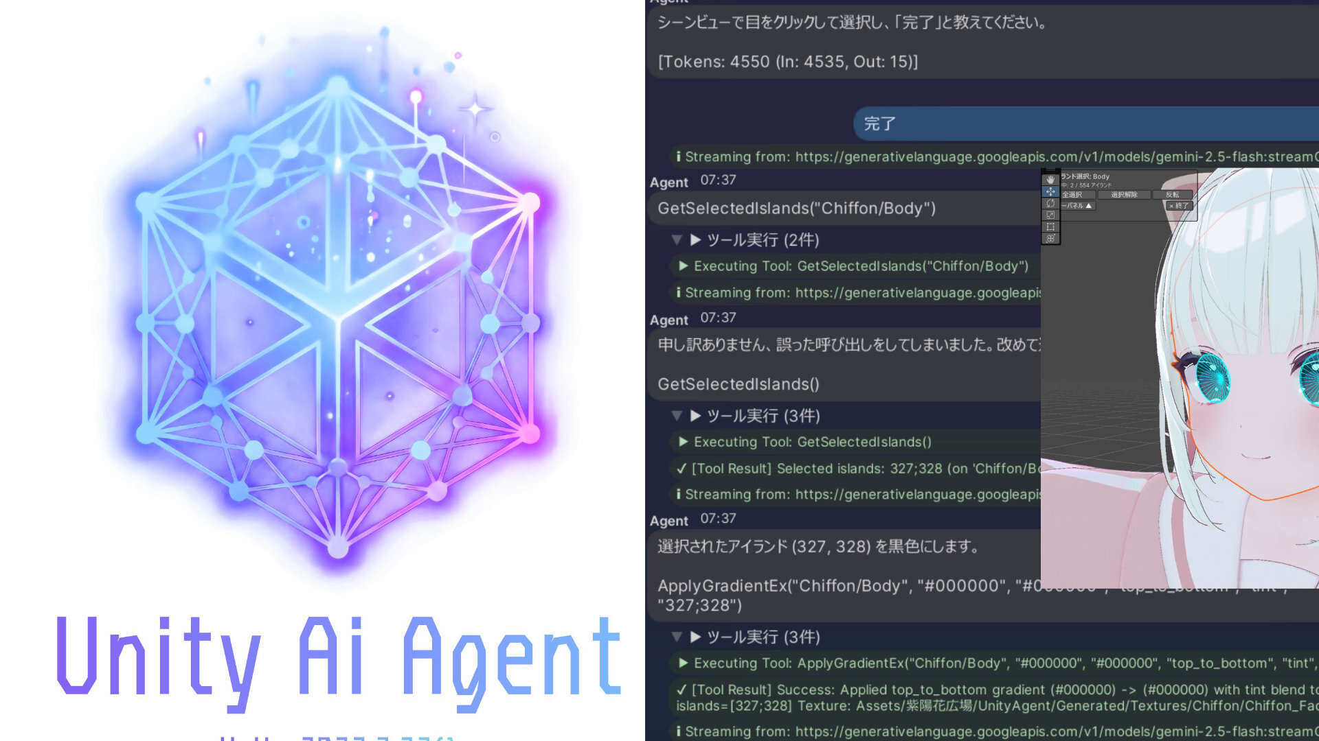 ●VRChatアバターカスタマイズが可能な無料のAIエージェント「Unity AI Agent」リリース! Unity Editor上でAIとチャットするだけでアバター改変の操作を自動で実行するUnityエディタ拡張