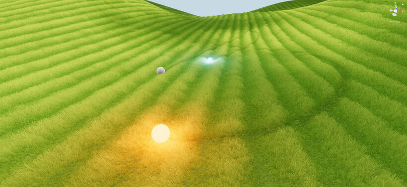 シーンでは最大3種類の草を個別に制御できる。草の大きさや幅、ランダムさ、風の影響、テクスチャの設定が可能なほか、雲の影やサブサーフェススキャタリングもサポート。草はペイント方式で直感的に配置可能で、BrushやEraser、Fillツールが利用できる。