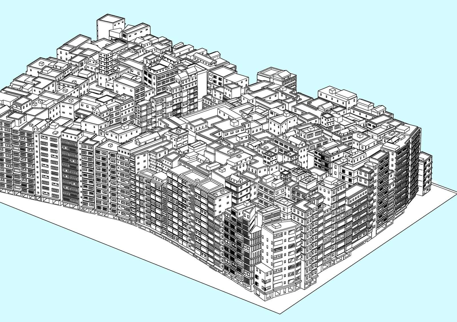 ユズノキ氏は2月23日(月)、香港・九龍地区に存在したスラム街を3DCGで再現したイラスト制作用背景素材「3D九龍城砦」をCLIP STUDIO ASSETSおよびBOOTHでリリースした。価格は3,000CLIPPY(CLIP STUDIO ASSETS)または500円(BOOTH)。