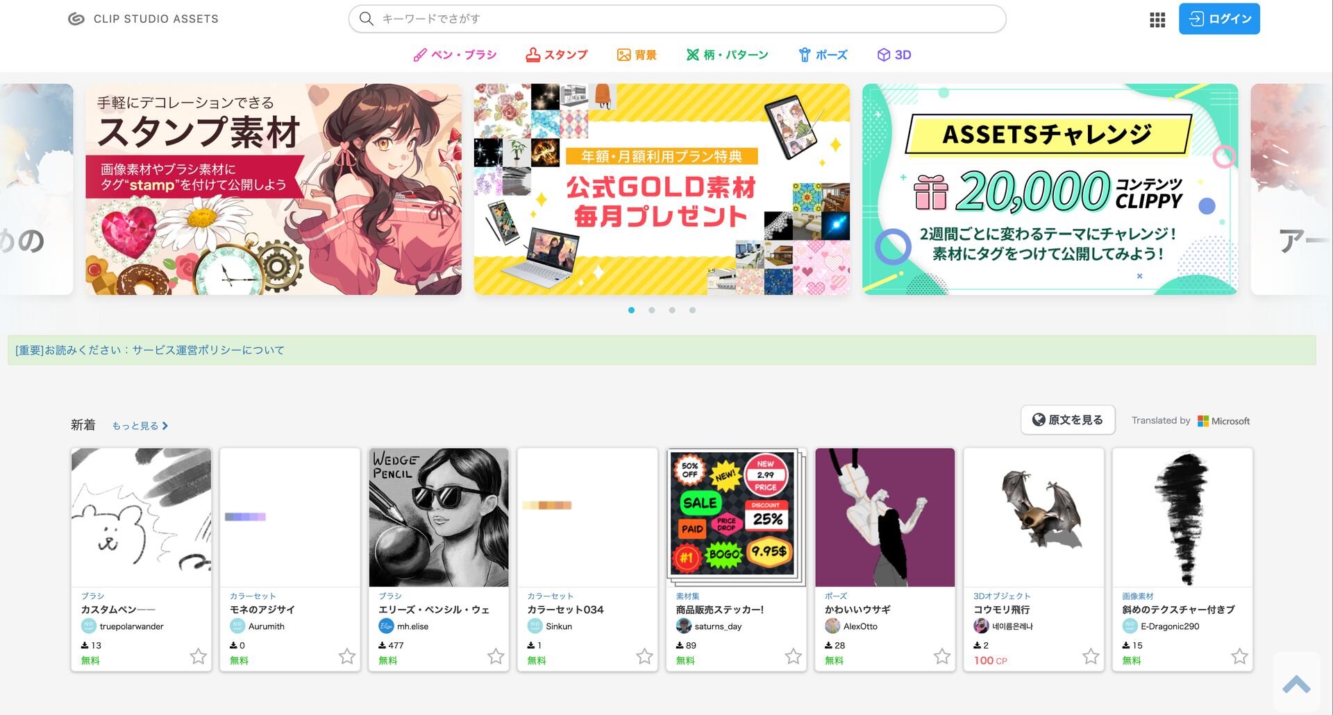 CLIP STUDIO ASSETSは、セルシスが運営する公式の素材共有およびダウンロードプラットフォーム。独自のブラシやペン設定をはじめ、3Dモデル、トーン、背景画像、作業を自動化するオートアクションなど、制作効率を向上させる多種多様なデジタル素材を入手できる。また、ユーザー自身が制作したオリジナル素材を出品し、世界中のクリエイターに向けて共有または販売することも可能。