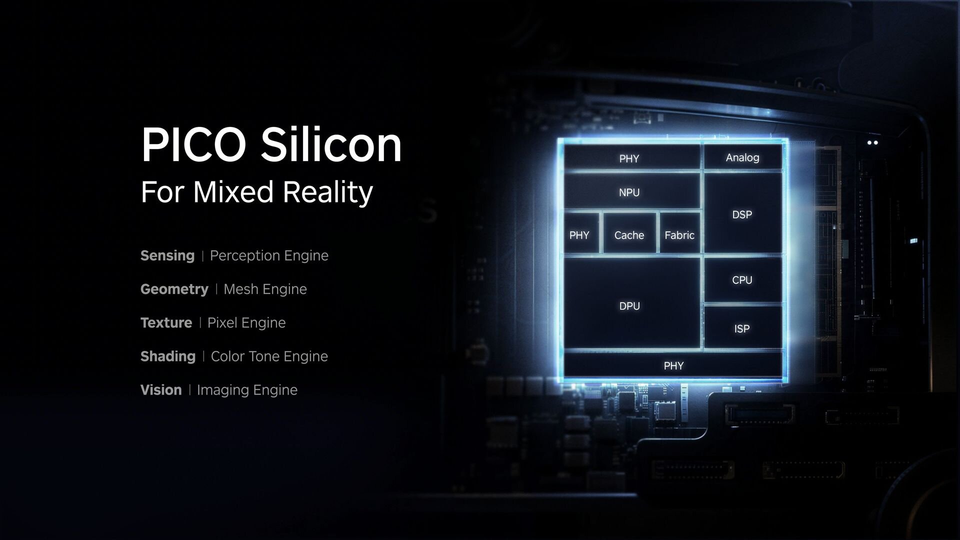 We are also introducing PICO Silicon, our own custom silicon for mixed reality. It integrates multiple in-house–designed computing units, co-optimized for real-time perception, spatial computing, and imaging. It enables ultra-high image quality, precise positioning, and stable head and eye tracking. It drives the system’s end-to-end latency down to 12 milliseconds.