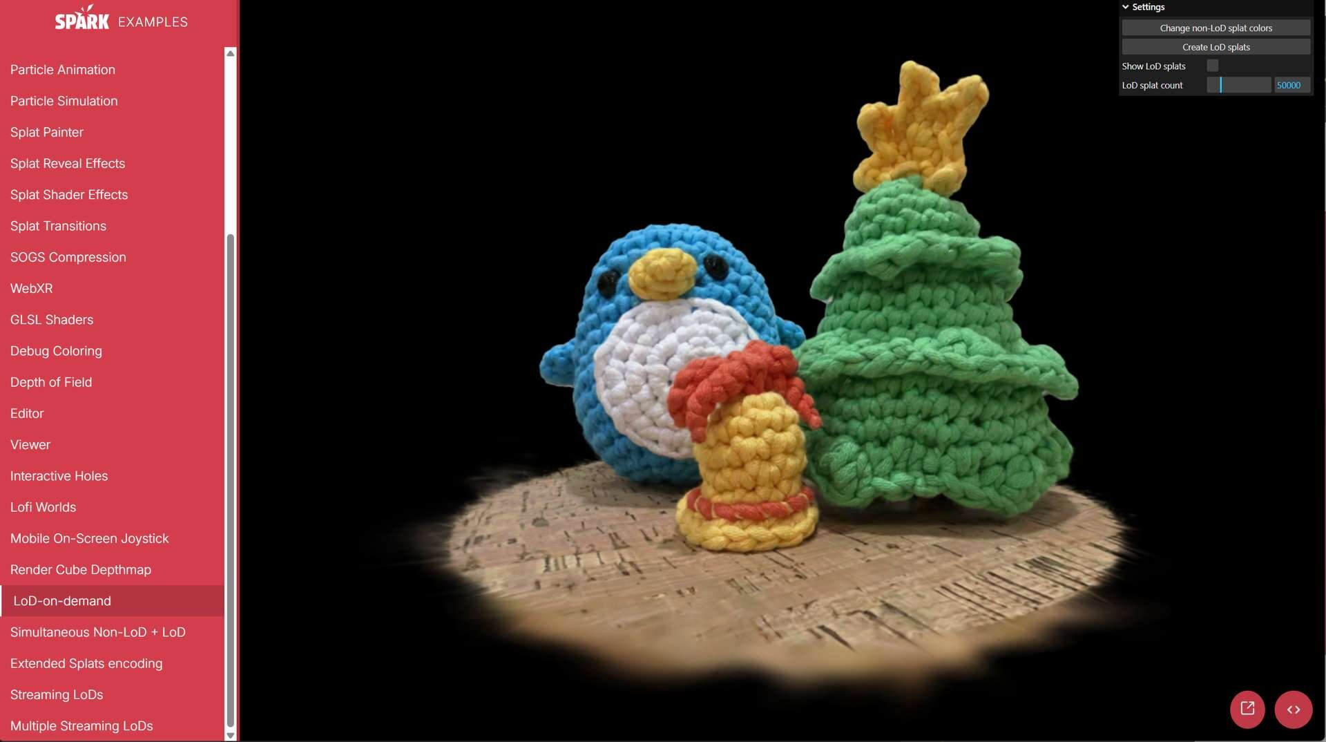 Spark 2.0 Developer Previewでは、あらゆるスプラットのデータを階層的なLoD表現に変換することが可能になり、1秒間の描画ごとに処理するスプラットの割り当て上限を固定できるようになった。これにより、複数のオブジェクトを組み合わせた場合でも、端末の性能に関わらず、カクつくことなく安定した表示速度を保つことができる。