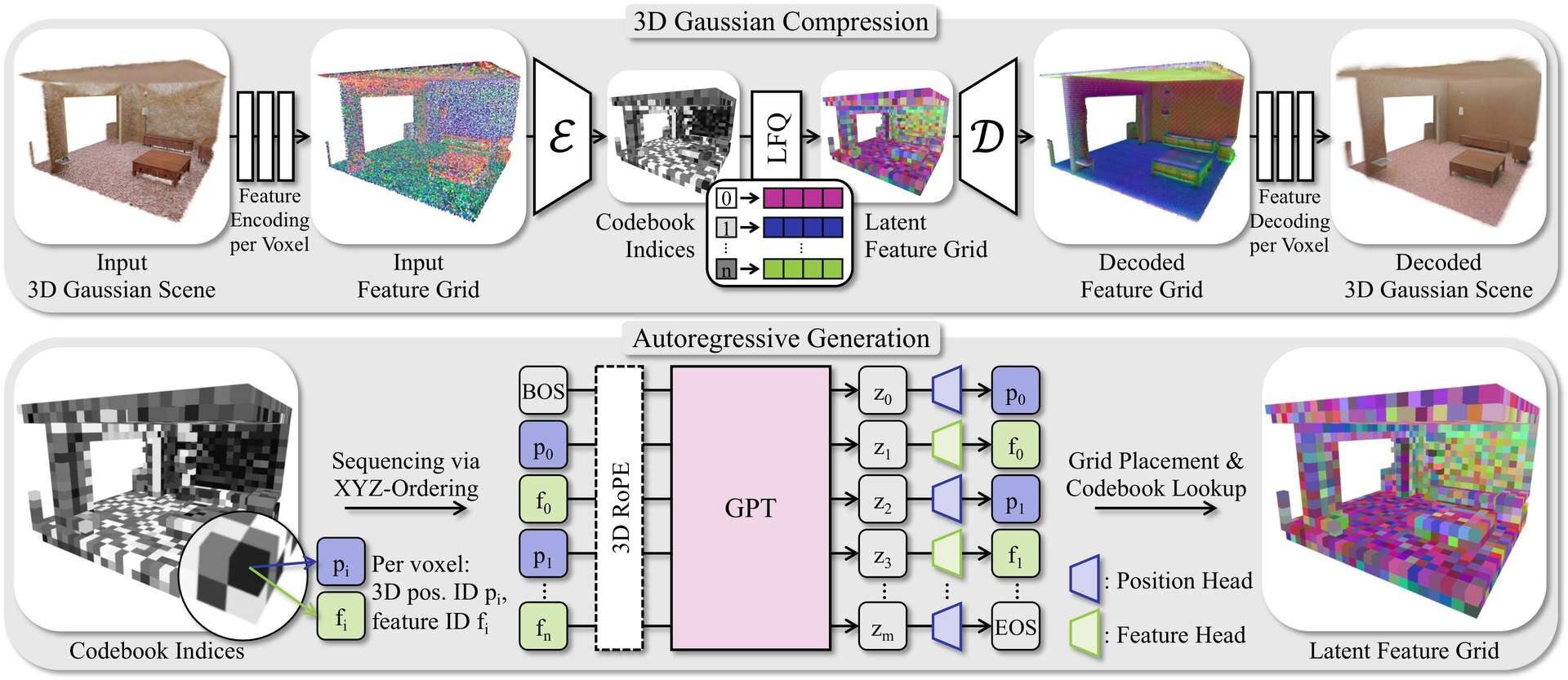 Unlike diffusion-based approaches, GaussianGPT explicitly models the scene distribution at every step, allowing for quite flexible scene synthesis.GaussianGPT:自己回帰型3Dガウシアンシーン生成