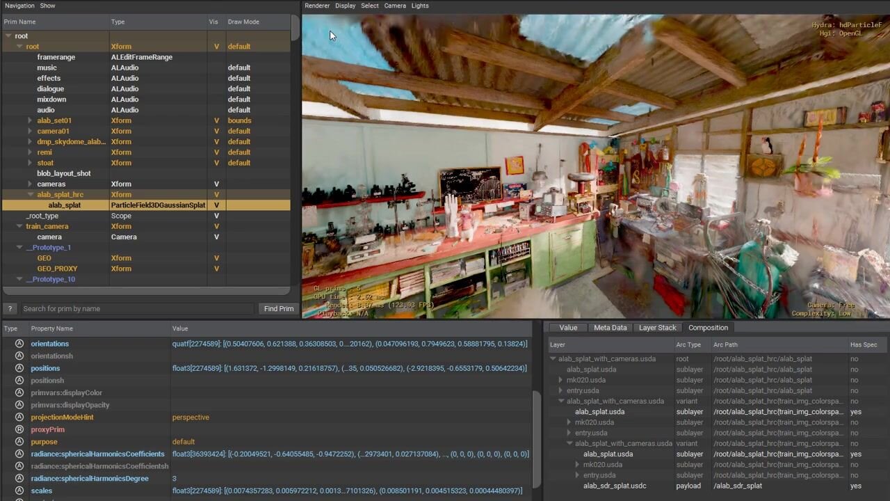 「OpenUSD v26.03」では、3DGSデータをOpenUSDの第一級primタイプとして扱うための仕様「UsdVolParticleField3DGaussianSplat」が含まれる新しいデータ構造のスキーマ「UsdVolParticleField」が導入された。動作確認用の専用レンダラ「hdParticleField」も同梱されており、開発者がすぐに表示テストや互換性の確認を行うことができる。