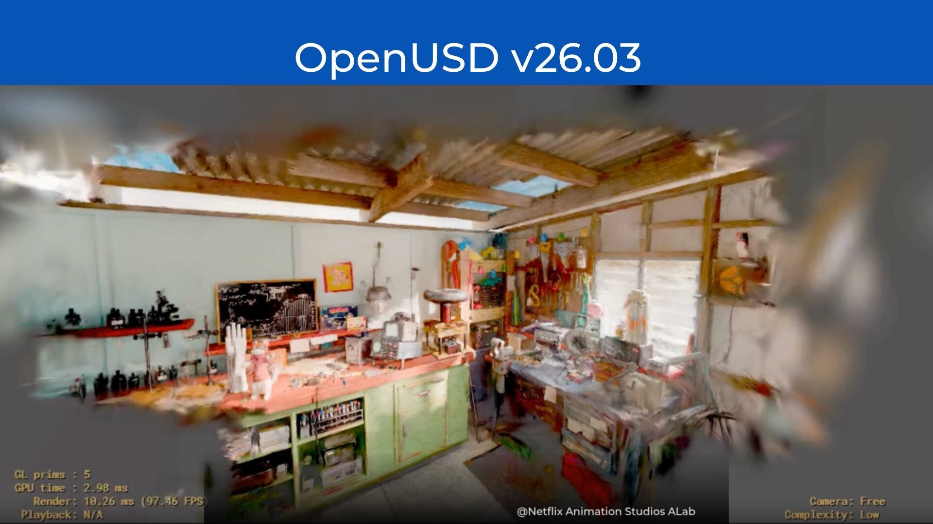 AOUSD(Alliance for OpenUSD)が3Dシーン記述フレームワークOpenUSDの最新バージョン「OpenUSD v26.03」をリリース。本アップデートでは3D Gaussian Splats(3DGS)のネイティブサポートや、Webブラウザでの実行を可能にするWebAssemblyへの対応が追加。また、データ処理エンジンの改良や描画性能の向上などの機能強化も施されている。