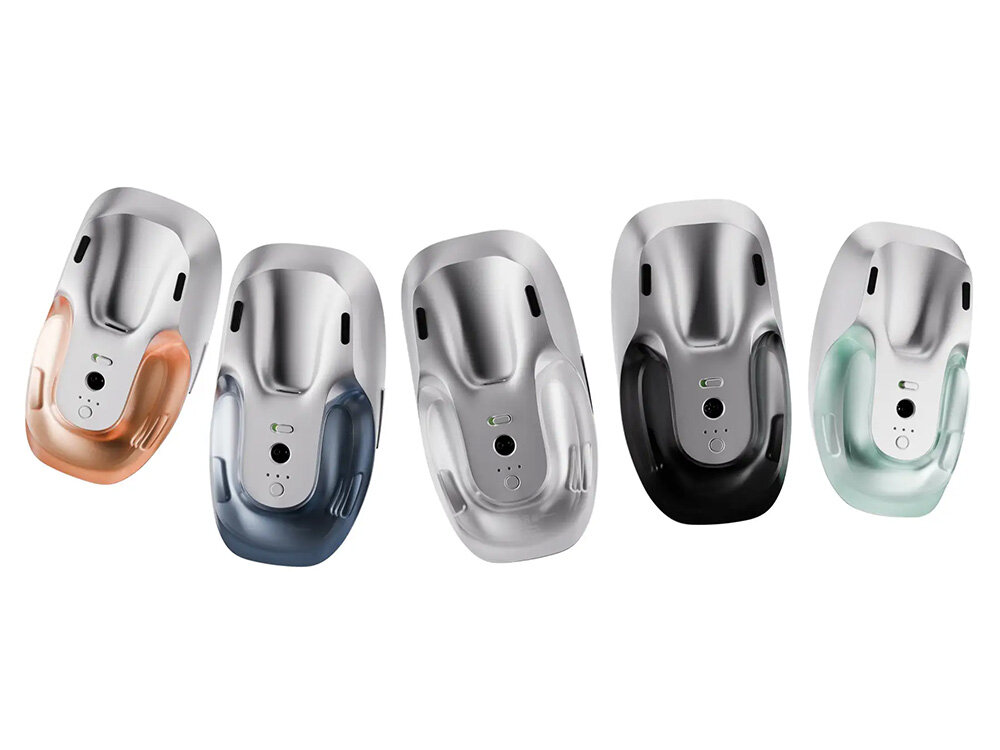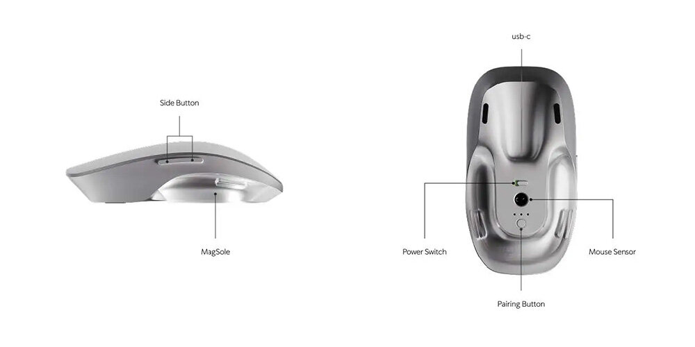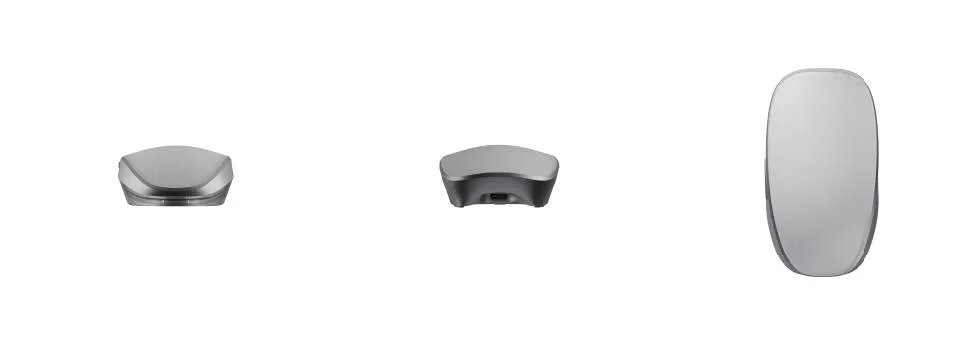 ボディはCNC削り出しアルミニウム、トップには曲面強化ガラスを採用。10回以上のプロトタイピングを経て、指先に最も心地よい微細テクスチャを実現した。底面の MagSole(マグソール) はマグネット着脱式で、摩擦係数を最適化。