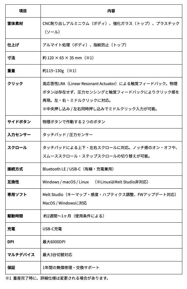 Melt Mouseは、マウス・トラックパッド・テンキーの機能を集約したクリエイター向けマウス。洗練されたデザイン、直感的なジェスチャー操作、上質なハプティックフィードバック体験により、日々のクリエイティブ体験をより効率的・楽しいものに変えてくれるだろう。