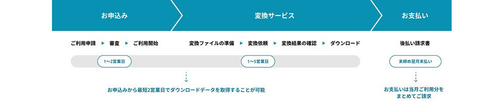 ※ 本サービスでは、1オーダー毎に最大10ファイルまでの登録・変換が可能