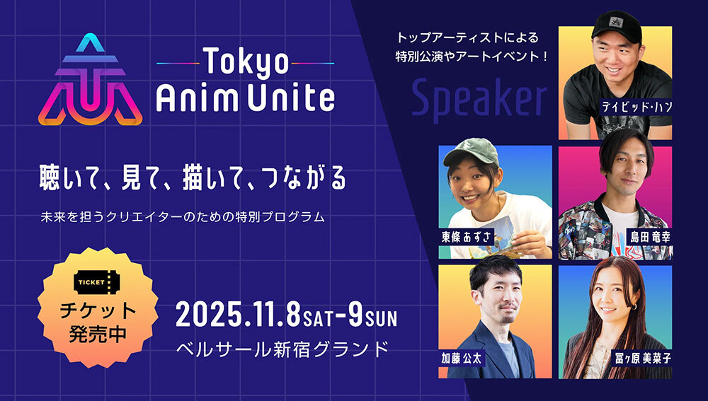 ワコムは、エンタメに命を与える同志たちの祭典「Tokyo Anim Unite 2025」を11月8日(土)・9日(日)の2日間、ベルサール新宿グランドコンファレンスセンターにて開催する。
