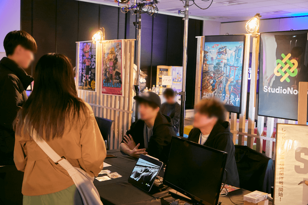 採用を視野にしたスタジオブースでポートフォリオを直接持ち込み、フィードバックを受けながら業界とのつながりを深めることができる。