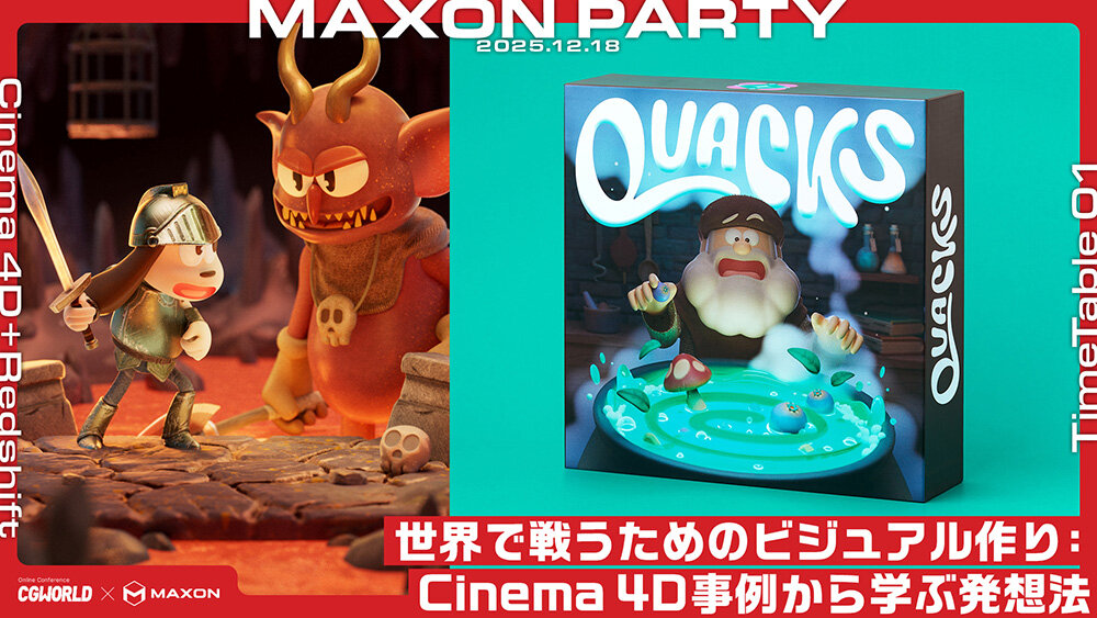 誰かの憧れとなる作品の裏側には技術があり、そしてその技術を支えるMaxon製品があります。イベント当日は、メイキングやテクニック、制作の裏側など、このPARTYだからこそ得られるアイデアや発想に触れていただけます。ぜひご参加ください!