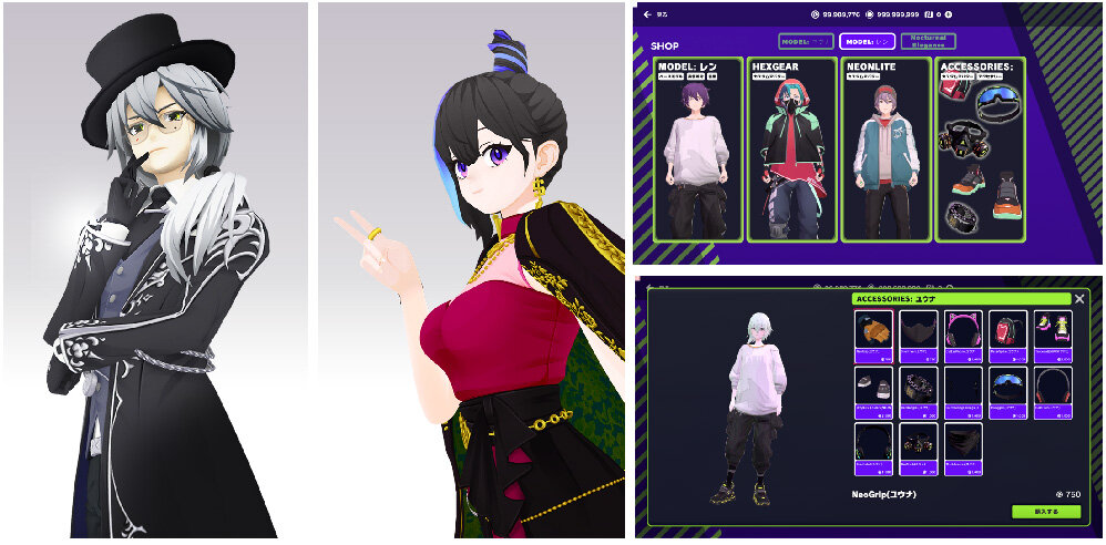 髪型や服装、各種カラーなどを自由にカスタマイズして、オリジナルアバターを作成できる。アバターは標準設定の他にゲーム内無料通貨(LUX)や有料通貨(NEWON)で購入することができ、カスタマイズが可能。