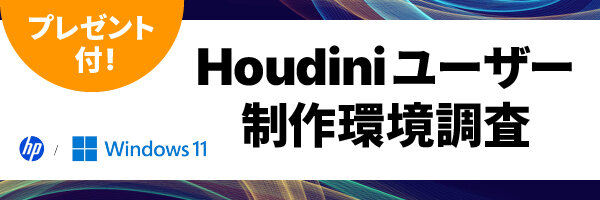 CGWORLDでは、Houdiniユーザーの制作環境に関する一斉調査を実施します。本企画は、クリエイター向け高性能PCを展開する株式会社日本HPおよび日本マイクロソフト株式会社の協力により実施するものです。
