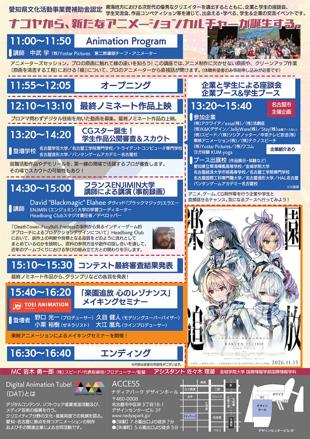 Digital Animation Tube!は、3月14日(土)に「デジタルアニメーションフェスティバルNAGOYA2026」を開催する。