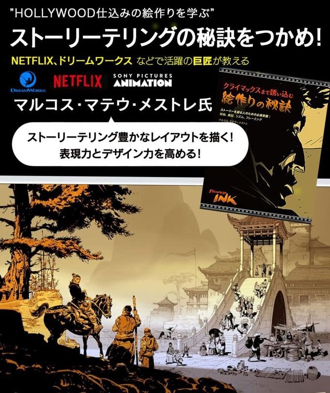 『Framed』シリーズで知られる著名なアーティスト、マルコス・マテウ=メストレ氏は、ハリウッドでストーリーを追求した絵作りを映画制作に実践してきました。その集大成として、フレイムドインクシリーズの教本を執筆し、世界中で高く評価されています。映画製作において、絵作りのレイアウトは欠かせない要素です。