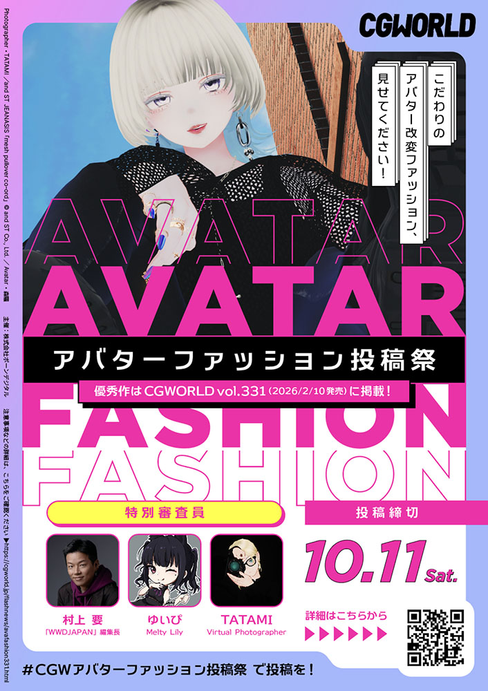月刊『CGWORLD vol.331』(2026年3月号/2026年2月10日発売)の特集「デジタルファッション制作ハンドブック2026」にて、VRChatのアバターファッションに特化したスナップ企画を実施します。