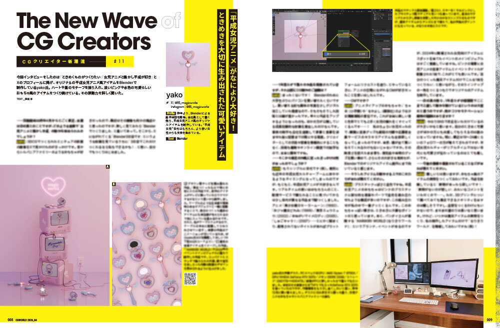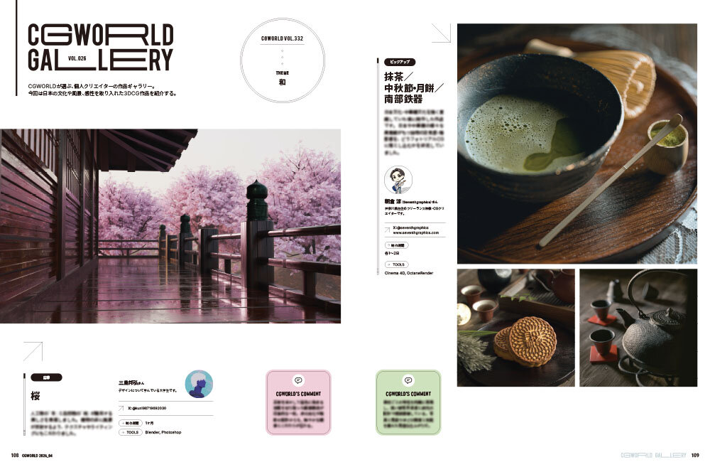 こんにちは、CGWORLD編集部です。本日は3月10日(火)に発売されるCGWORLD vol.332(2026年4月号)の誌面を少しだけお見せします。