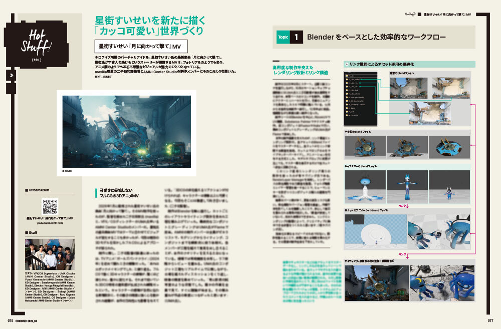 そのほか、ホロライブの人気VTuber・星街すいせい氏の最新MV『月に向かって撃て』、1988年放送のTVアニメ正統続編『鎧真伝サムライトルーパー』、TVアニメ『呪術廻戦』第3期「死滅回游 前編」のオープニングテーマとなるKing Gnu『AIZO』MVなど、メイキング、TIPS、連載陣も大充実!