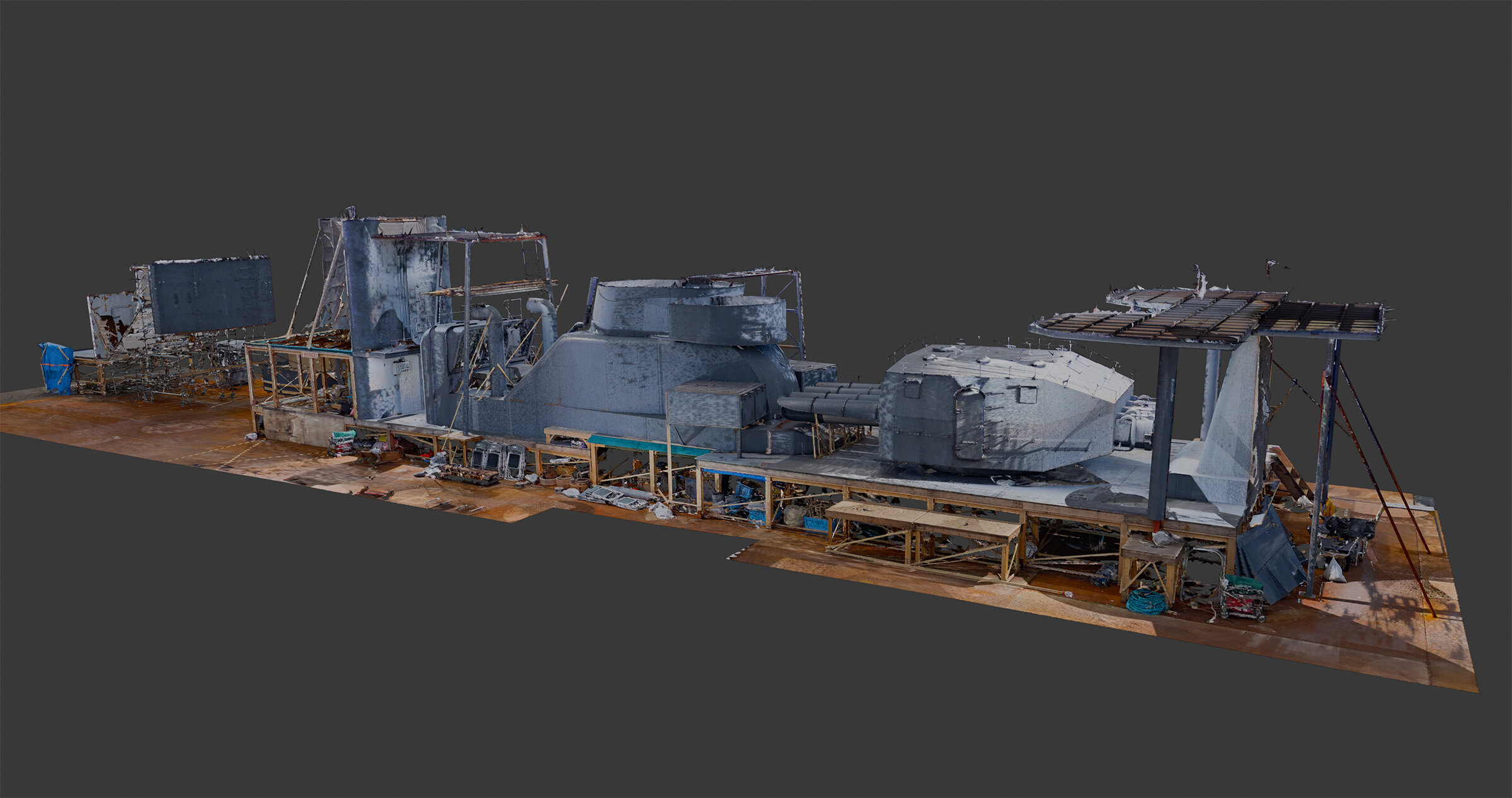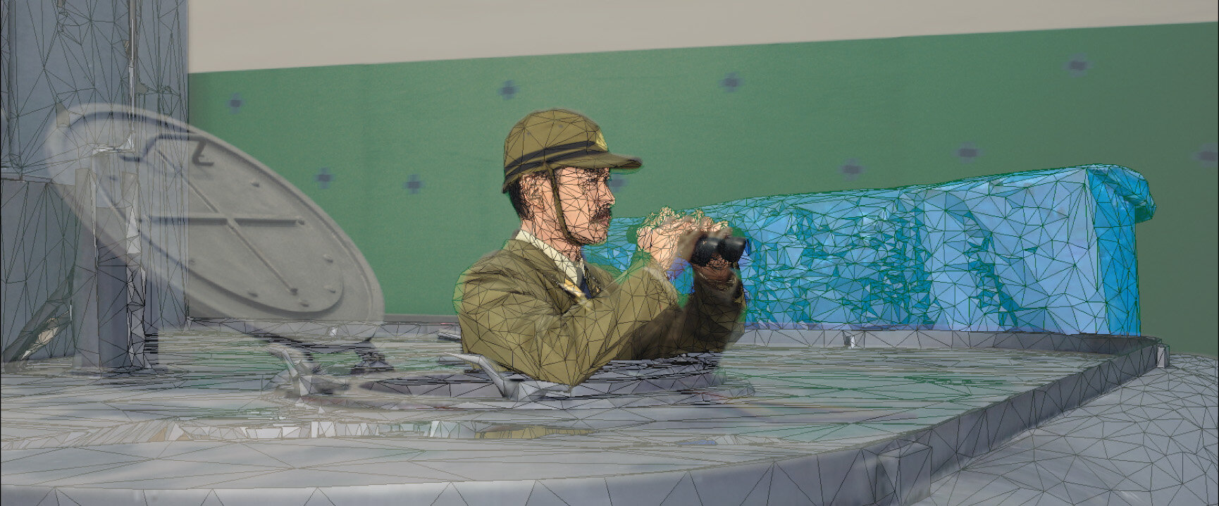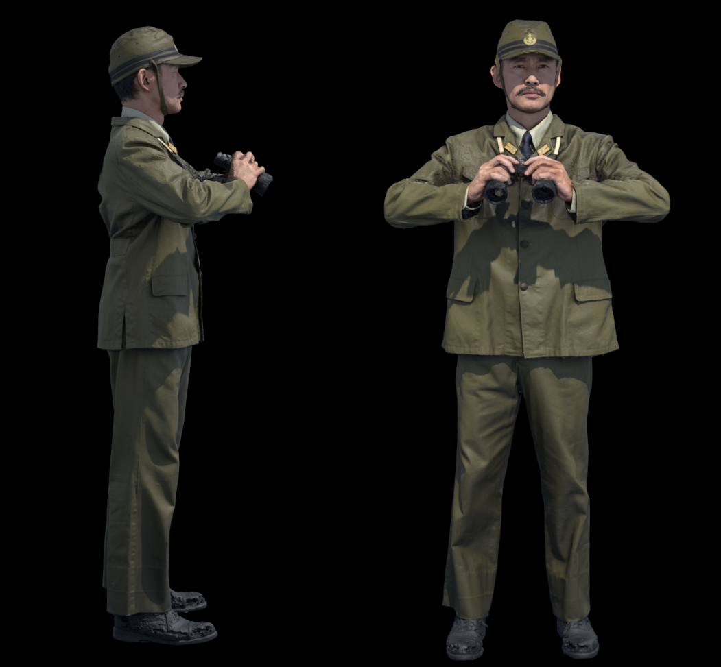 モデリングを帆足氏が一括して担当し、ルックデヴやショットワーク向けの調整などをコラットが担当するというかたちで制作を進めたそうだ。「まずは雪風からモデリングを始めて、戦艦大和など他の艦船や戦闘機をつくっていきました。艦船は出撃シーンごとに装備や汚し具合が変わるので、バリエーションをつくる必要もありました。作業期間は1ヶ月ほどでしたが、当時の記憶がほとんどありません(笑)。10年ほど前なら、自分ひとりでは無理な物量でしたが、ツールの進化にも救われましたね。例えば3DCoatによる3Dペインティングの場合、以前はエッジなどを手描きしていたところを自動処理だけでも十分に存在感を出せるようになりました」(帆足氏)。ほかにも雪風のロケセットの3Dスキャン、寺澤艦長ならびに兵士のデジタルダブル用の3Dスキャンも行われた。