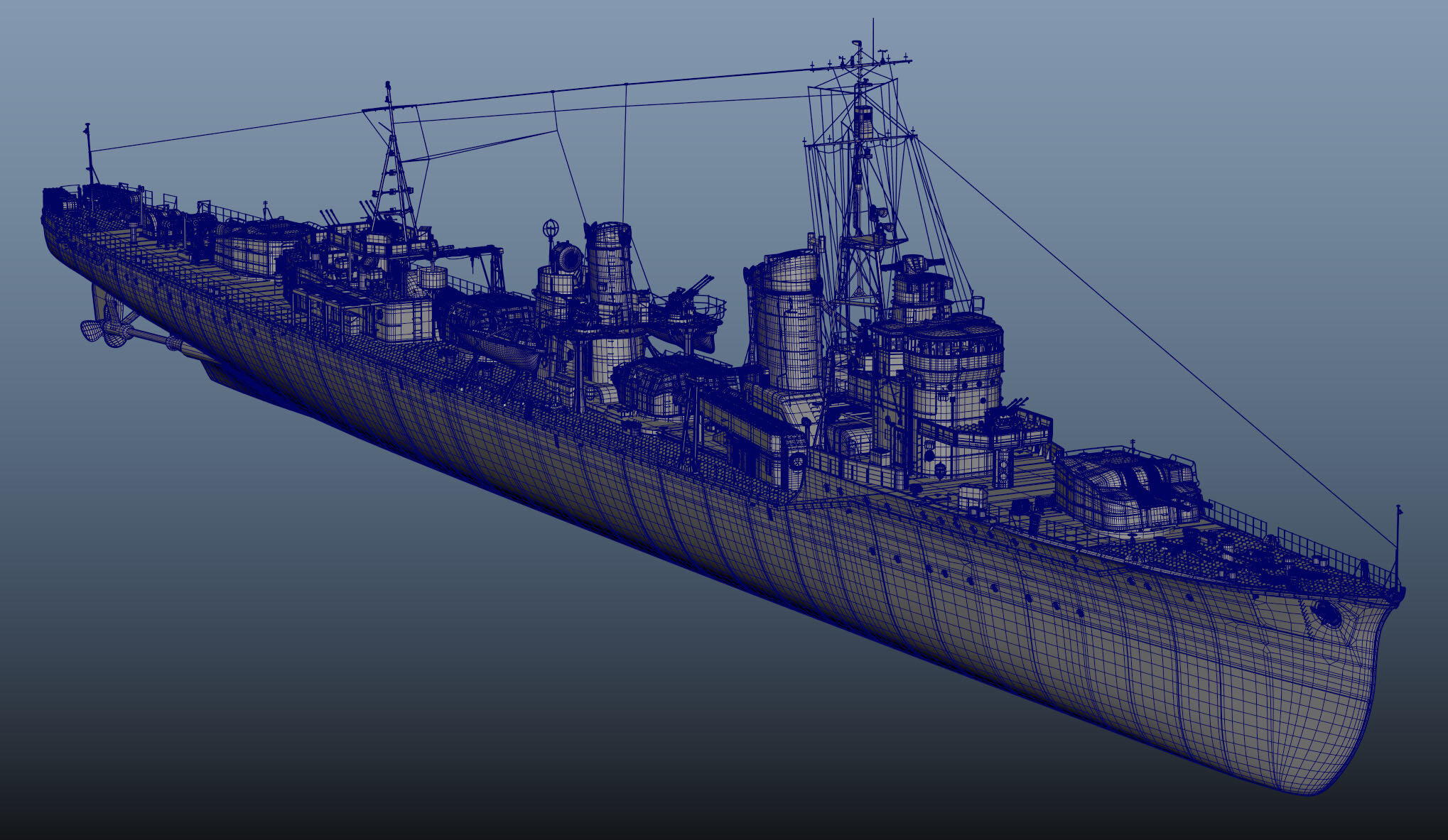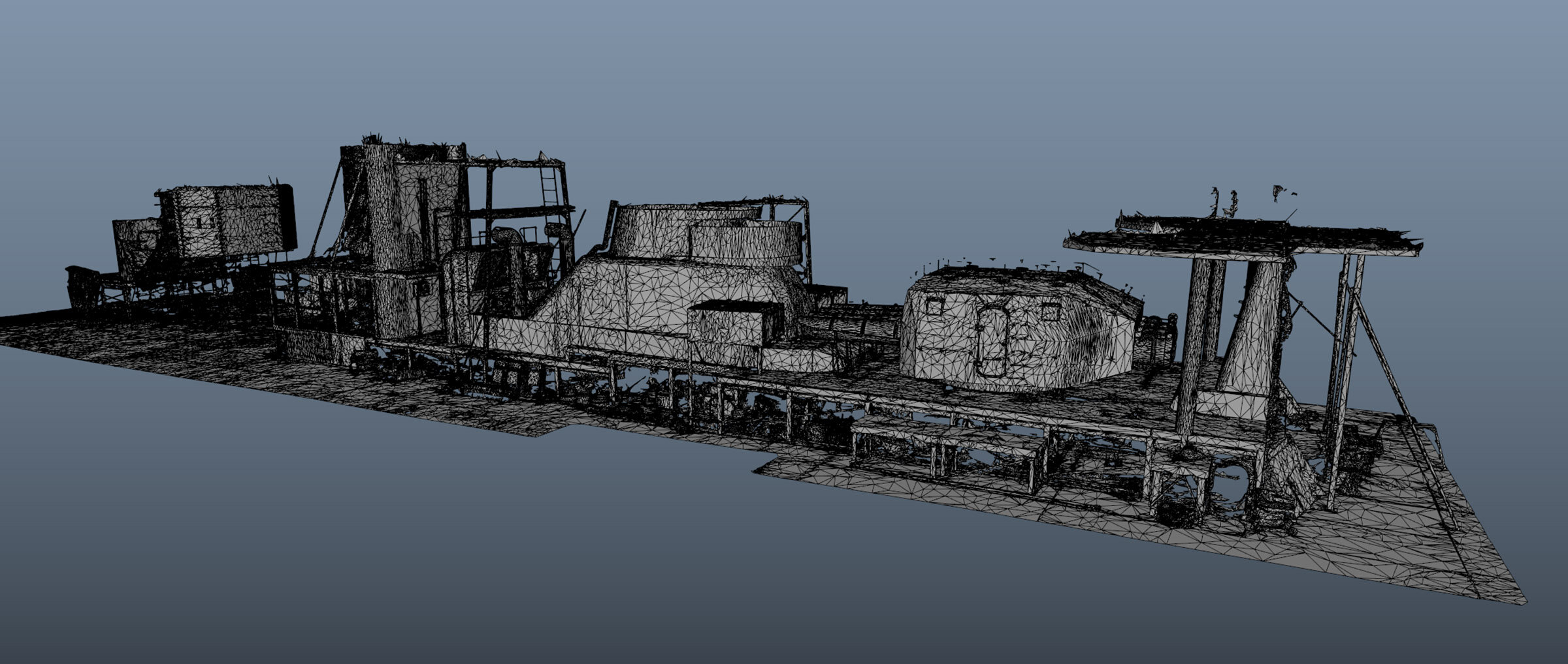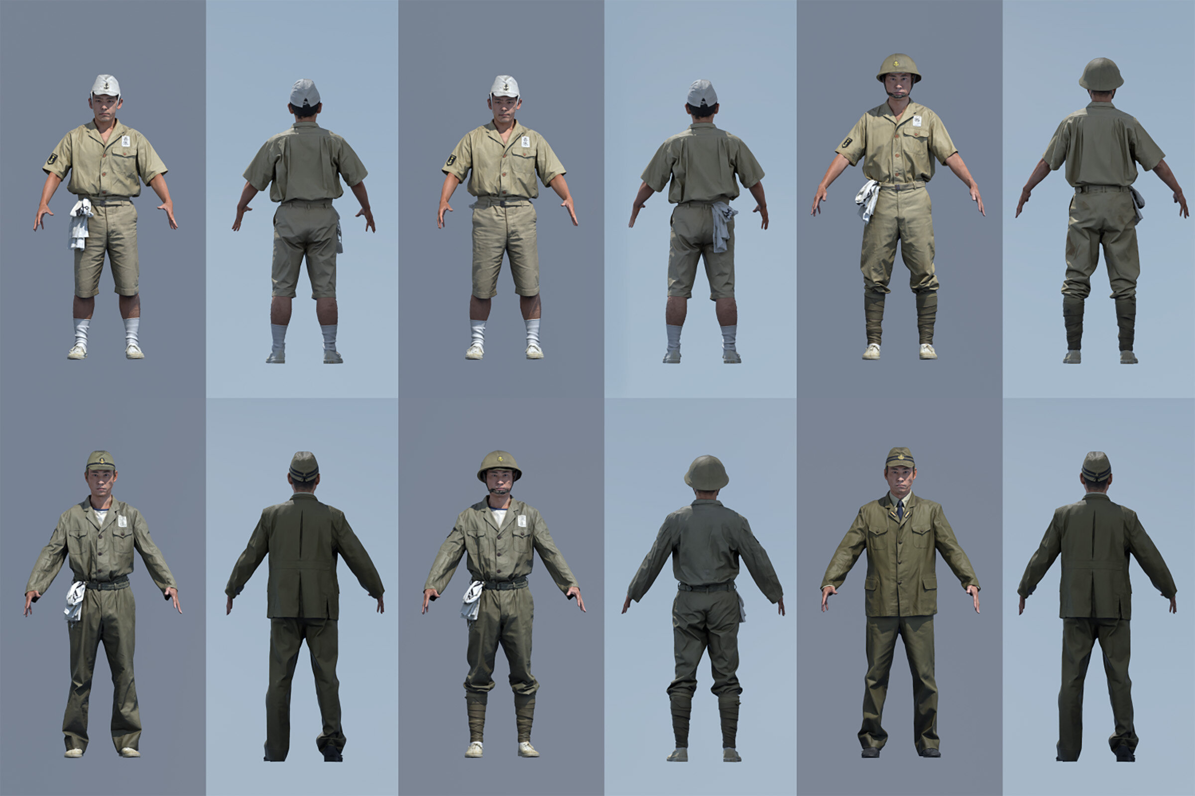 モデリングを帆足氏が一括して担当し、ルックデヴやショットワーク向けの調整などをコラットが担当するというかたちで制作を進めたそうだ。「まずは雪風からモデリングを始めて、戦艦大和など他の艦船や戦闘機をつくっていきました。艦船は出撃シーンごとに装備や汚し具合が変わるので、バリエーションをつくる必要もありました。作業期間は1ヶ月ほどでしたが、当時の記憶がほとんどありません(笑)。10年ほど前なら、自分ひとりでは無理な物量でしたが、ツールの進化にも救われましたね。例えば3DCoatによる3Dペインティングの場合、以前はエッジなどを手描きしていたところを自動処理だけでも十分に存在感を出せるようになりました」(帆足氏)。ほかにも雪風のロケセットの3Dスキャン、寺澤艦長ならびに兵士のデジタルダブル用の3Dスキャンも行われた。