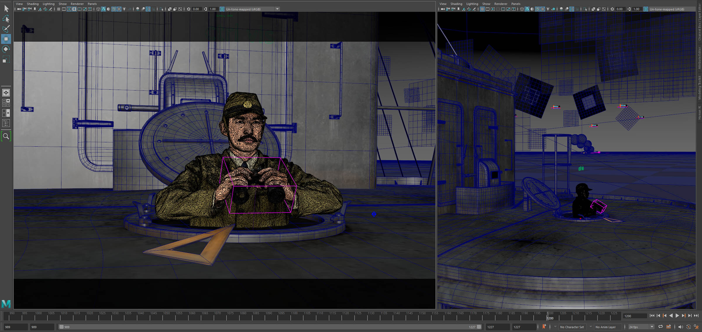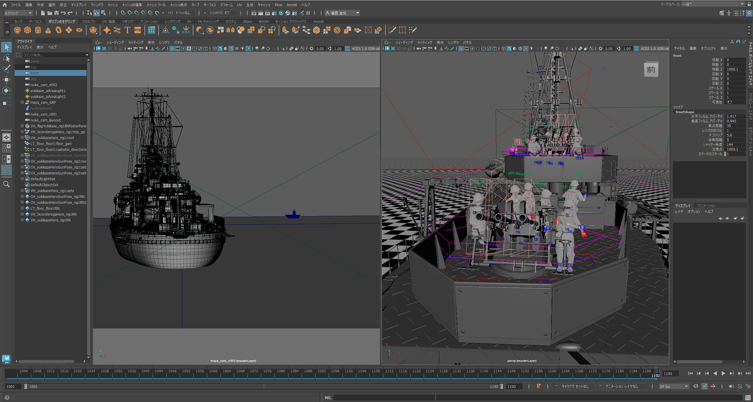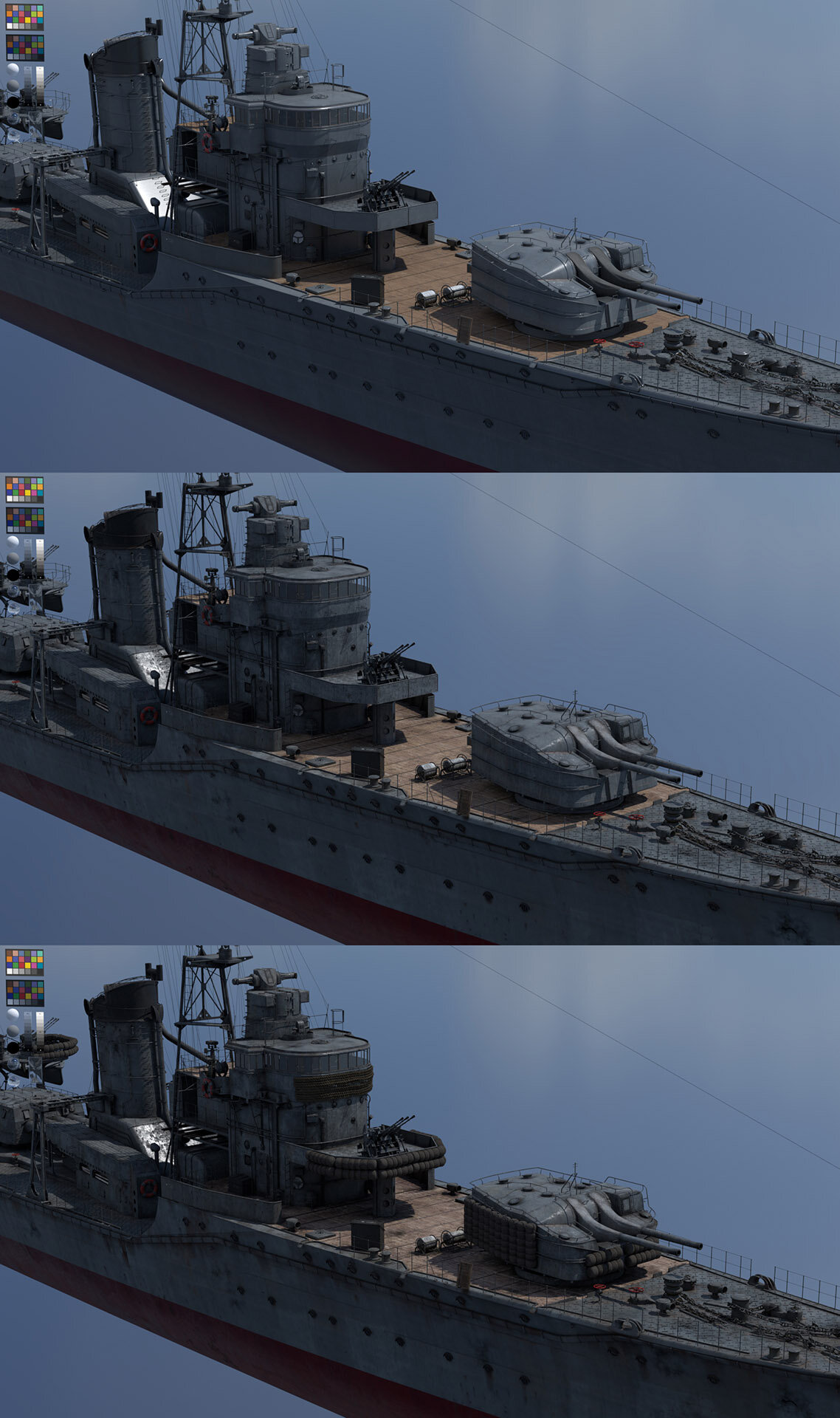 「艦船を俳優として描くという方針だったので、その衣装や小道具とも言えるアセットを妥協するわけにはいきませんでした。アセット制作が最初の難関になりましたね」(オダ氏)。そこで、多くの艦船モデルを手がけてきた帆足タケヒコ氏(studio picapixels)に協力を求めたという。