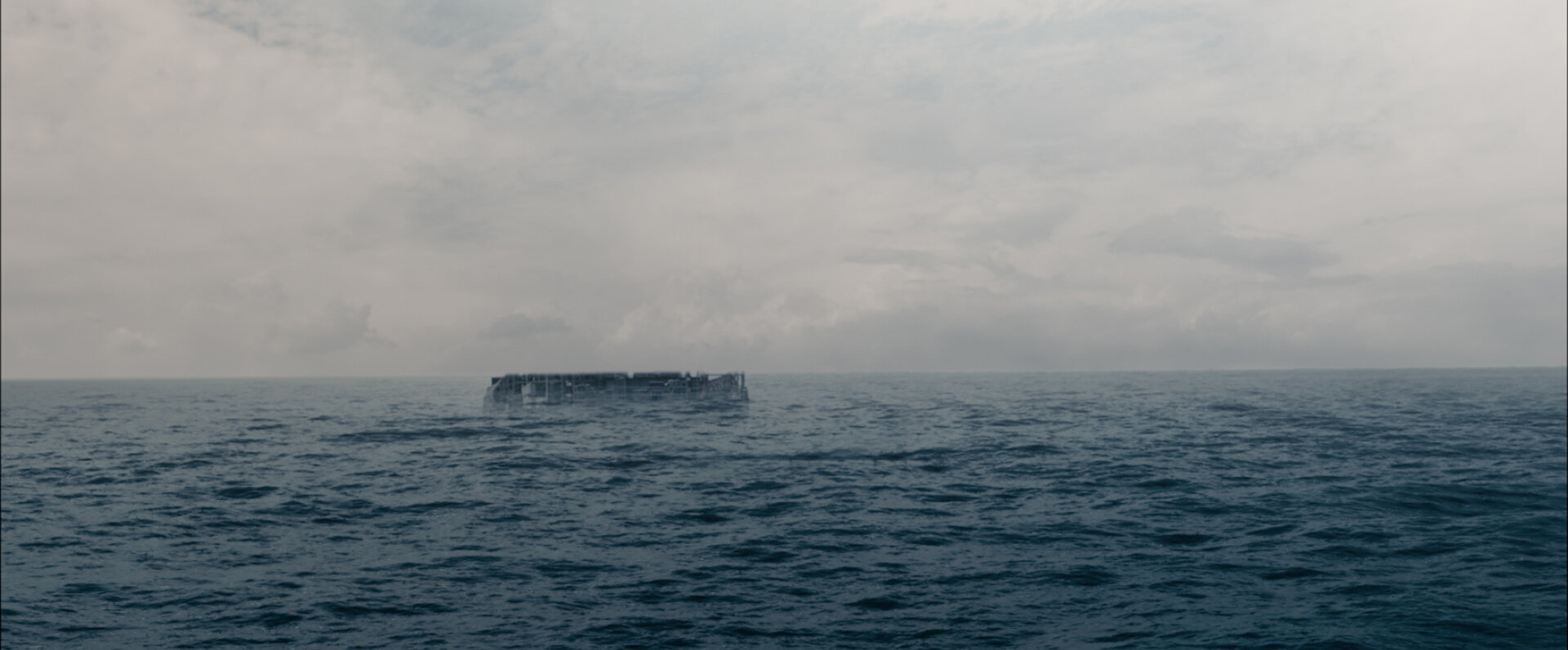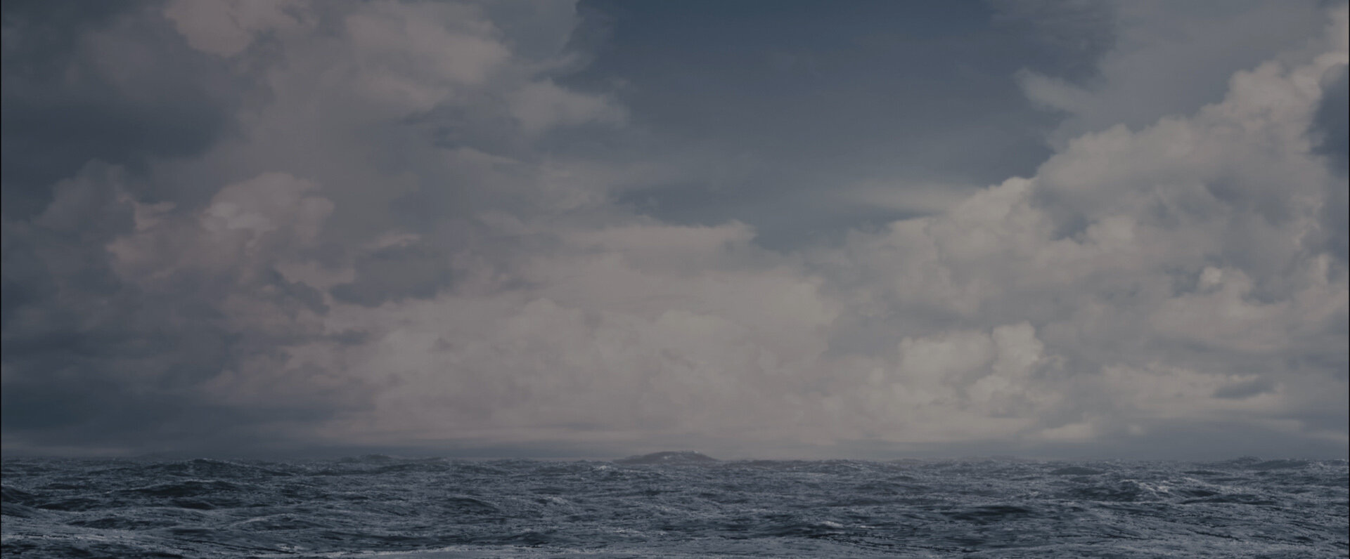 ▲<STEP 6>LUTを適用した最終形。「実際プレートの正確な位置に、CGカメラを置くと画面全体が海で埋まった印象になってしまうため、手前と奥で別の海素材をブレンドすることで奥行きを出しました。Houdiniで作成した海をベースにして、Blenderで作成した海面を見映え良くブレンドさせています」(小野裕佑生氏)